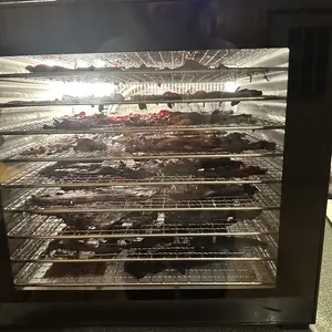 • 10-Layer Stainless Steel Trays: This food dehydrator has ten stainless steel trays that are food-grade 304 and measure 11.8 x 11 inches / 300 x 280 mm each. Each layer can hold up to 1.7 pounds of food, so you can dry different types of fruits and vegetables all at once.