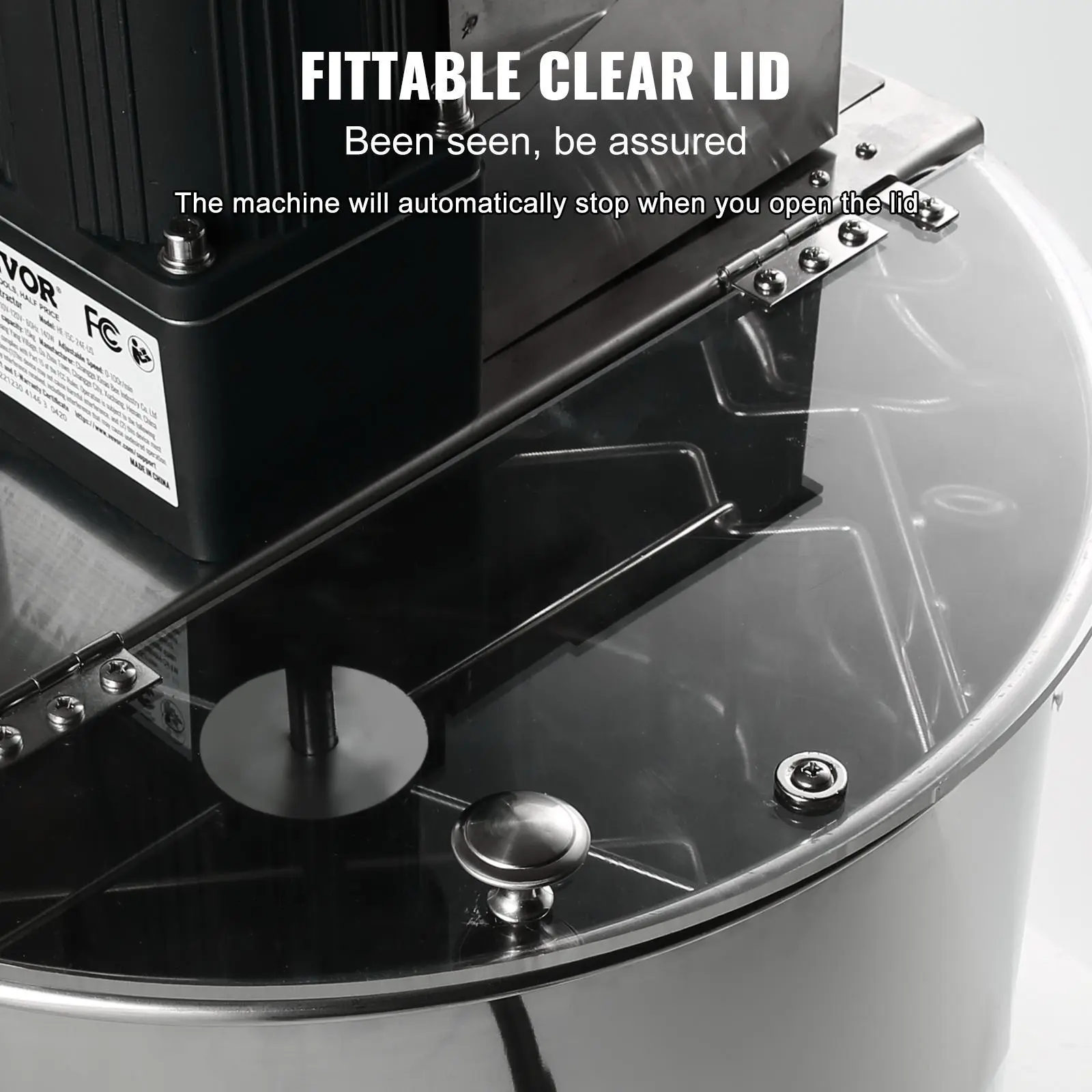 • See Your Honey Move: Get ready to watch your honey flow with our clear lid extractor! The lid allows you to easily monitor the progress of your extraction. We've designed this electric honey spinner with safety in mind. If the lid is opened during extraction, the shaker will automatically stop, giving you peace of mind and a pleasant honey harvesting experience.