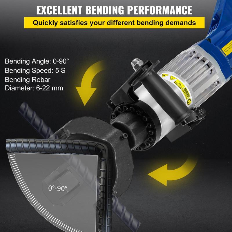 • 0 - 90 Degrees Excellent Performance: This electric rebar bender is designed with excellent performance. It helps save valuable person-hours by bending rebar 1/4'' to 7/8" (6 to 22 mm) within 5 seconds. 1/4'' / 6 mm #2 Rebar(0-55°), 7/8" / 22 mm #7 Rebar(0-90°). It is able to satisfy your various bending demands.