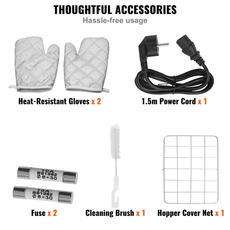 The VEVOR Electric Oil Press Machine features a powerful 850W pure copper motor. It can press 3.3 lbs/1.5kg of oil per hour, with continuous 24-hour operation. The high-temperature hot pressing principle enhances oil extraction rate. Preheat for 5-10 minutes before use. Dry materials can be directly placed for pressing. No additional frying is required. It is smoke-free during the oil pressing process.