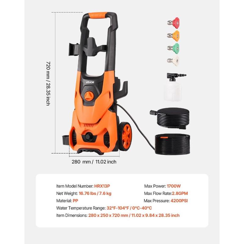 VEVOR Electric Pressure Washer, Max 4500 PSI and 3.2 GPM with Pressure Adjustment, High Power Pressure Cleaning Machine with 4 Quick Connect Nozzles, for Cars/Fences/Driveways/Patios/Home CleaningVEVOR Electric Pressure Washer, Max 4500 PSI and 3.2 GPM with Pressure Adjustment, High Power Pressure Cleaning Machine with 4 Quick Connect Nozzles, for Cars/Fences/Driveways/Patios/Home Cleaning