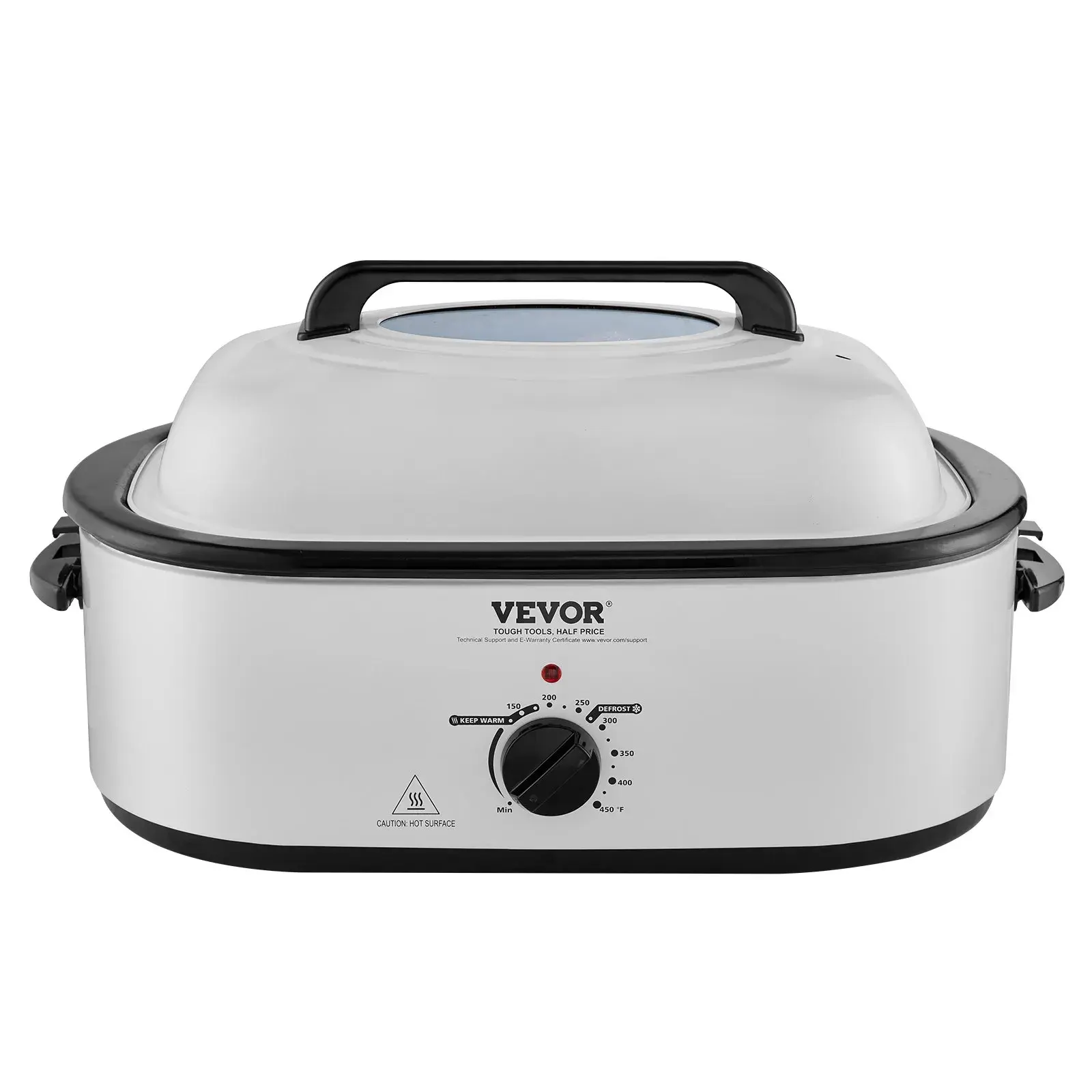 With 150℉ to 450℉ wide temperature, VEVOR roaster oven offers versatile cooking options for roasting, baking, and slow cooking. The defrost setting allows you to thaw frozen food quickly; keep warm setting maintains the ideal serving temperature, letting you prepare meals ahead without concerns of them getting cold.