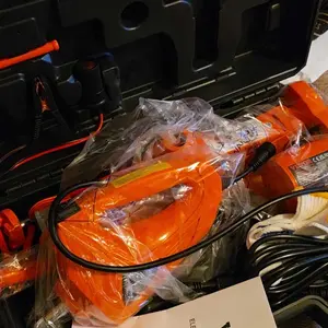 ¡Multi-Function Carrying Case: Everything you need to get started is provided and well organized in the toolbox. This electric jack kit includes an electric car jack, 2 pcs saddles, 3 pcs spare fuses, gloves, a battery clip, a cigarette lighter power cable, and a tough case. Additionally, a luminous red triangle on the box's exterior can be used as a warning sign when changing tires on the roadside.