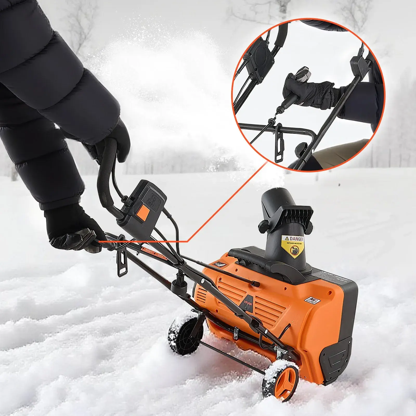 Dual Safety Switch: To start the winter snow blower, press the safety lock button before pulling the trigger-an added layer of safety to help avoid accidental activation, especially with winter gloves on.