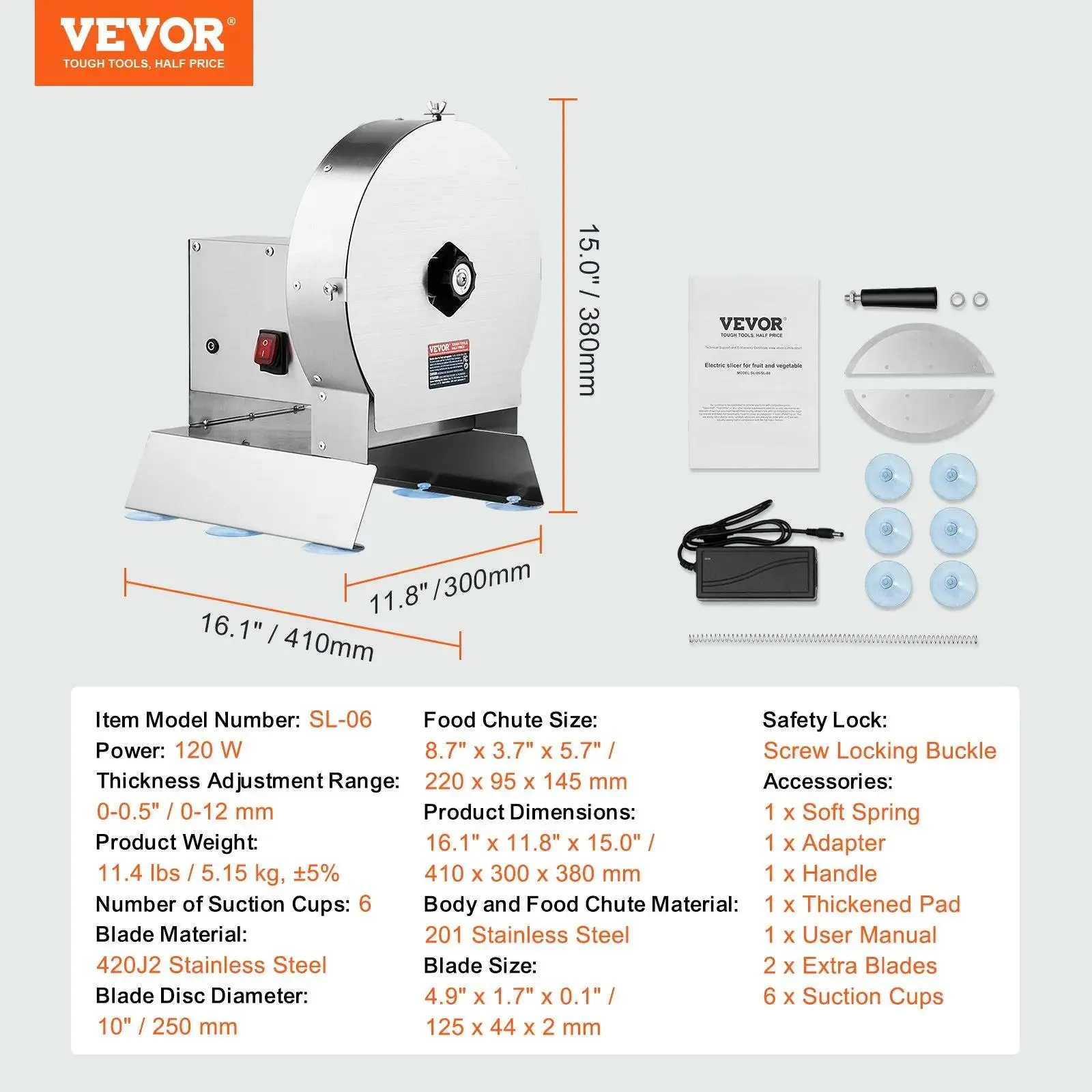 Conclusion:The VEVOR Electric Vegetable Slicer is a versatile and efficient kitchen tool, perfect for slicing a variety of fruits and vegetables. Its adjustable thickness, durable blades, and versatile operation make it a must-have for any kitchen. Whether you prefer electric or manual operation, this slicer ensures precise and smooth slicing.