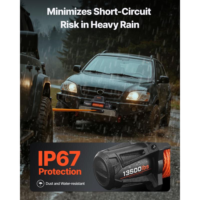 • 13500 lbs Strong Pull: This electric winch delivers 13,500 lbs of pulling force, perfect for SUV or pickup recovery from mud or sand. No gear distortion worries. 🌵