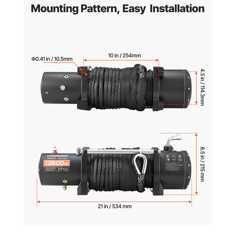 • Powerful Pulling Force: This winch boasts a 13,500 lbs load capacity, ensuring quick recovery from mud or sand. No gear distortion worries with its robust design. Perfect for SUVs and pickups.