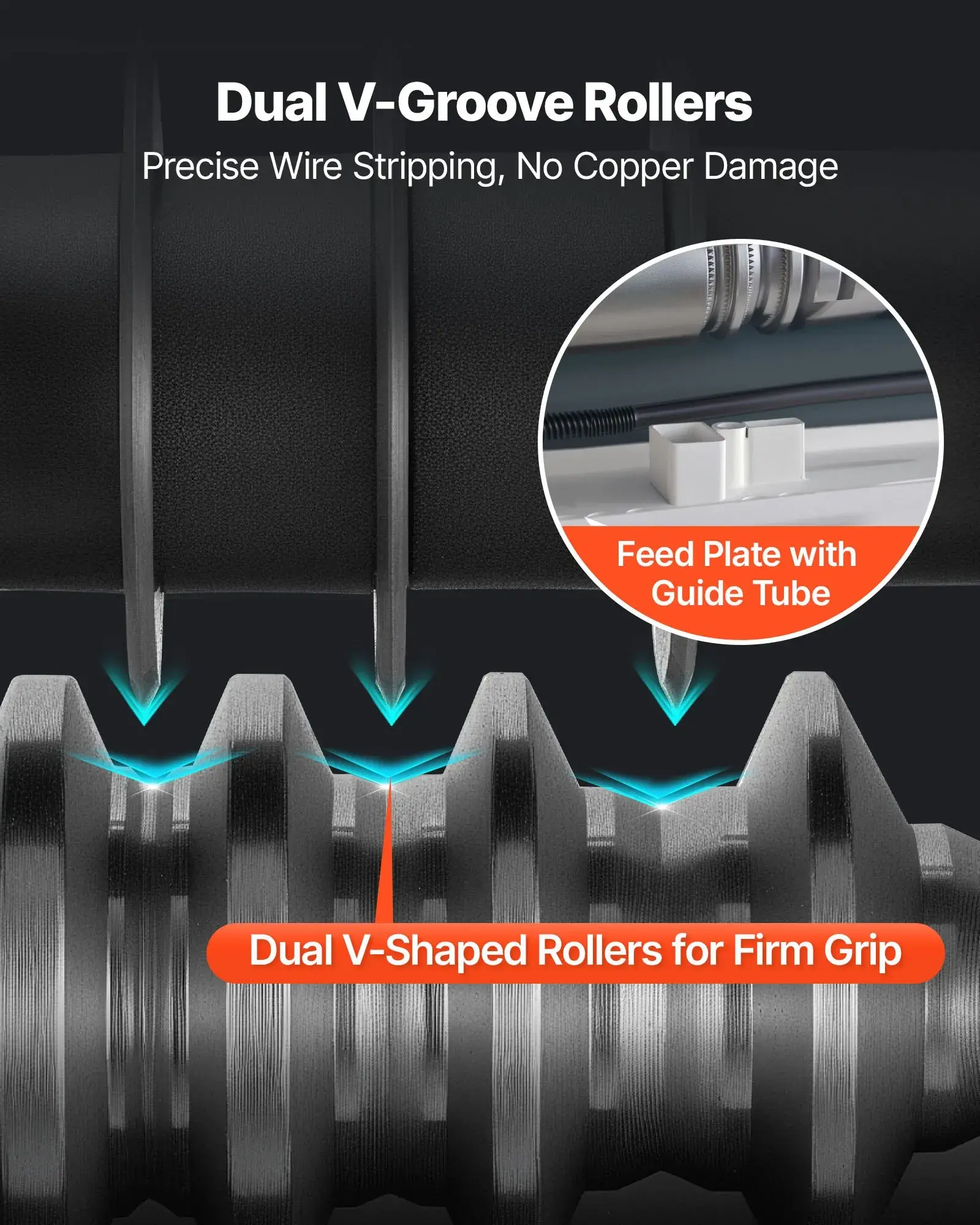 ·Fine Stripping for Thin Wires: Designed with a guide tube and deep V-groove rollers, this electric motorized cable stripper keeps thin wires aligned and stable—avoiding slippage or damage to copper cores while ensuring a clean, smooth strip every time