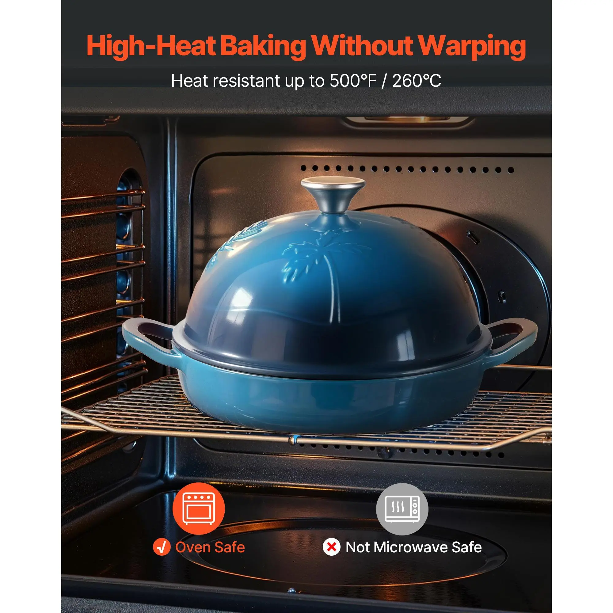 VEVOR Enameled Cast Iron Dutch Oven,  , 5 Quart Pot for Sourdough Bread Baking, Heavy-Duty Cookware Pan with Lid and Dual Handles, Oven Induction Compatible up to 500℉, for Cooking Roasting