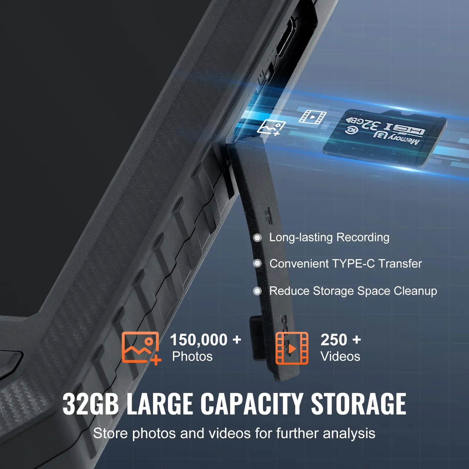 • User-Friendly Operation: VEVOR 1920*1080 borescope is optimized with various thoughtful designs: photo & video taking, 180° image rotation, high-capacity 2000mAh battery, Type-C fast charging, 32GB SD card, and useful accessory - hook, magnet, protective cap.