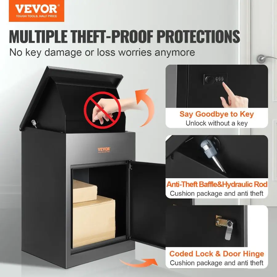 VEVOR Package Delivery Boxes for Outside, Extra Large Mailbox with Coded Lock, Galvanized Steel Wall Mounted Mailboxes 17.3x13.8x22.8, Anti-Theft Baffle, IPX3 Waterproof for Porch, Curbside