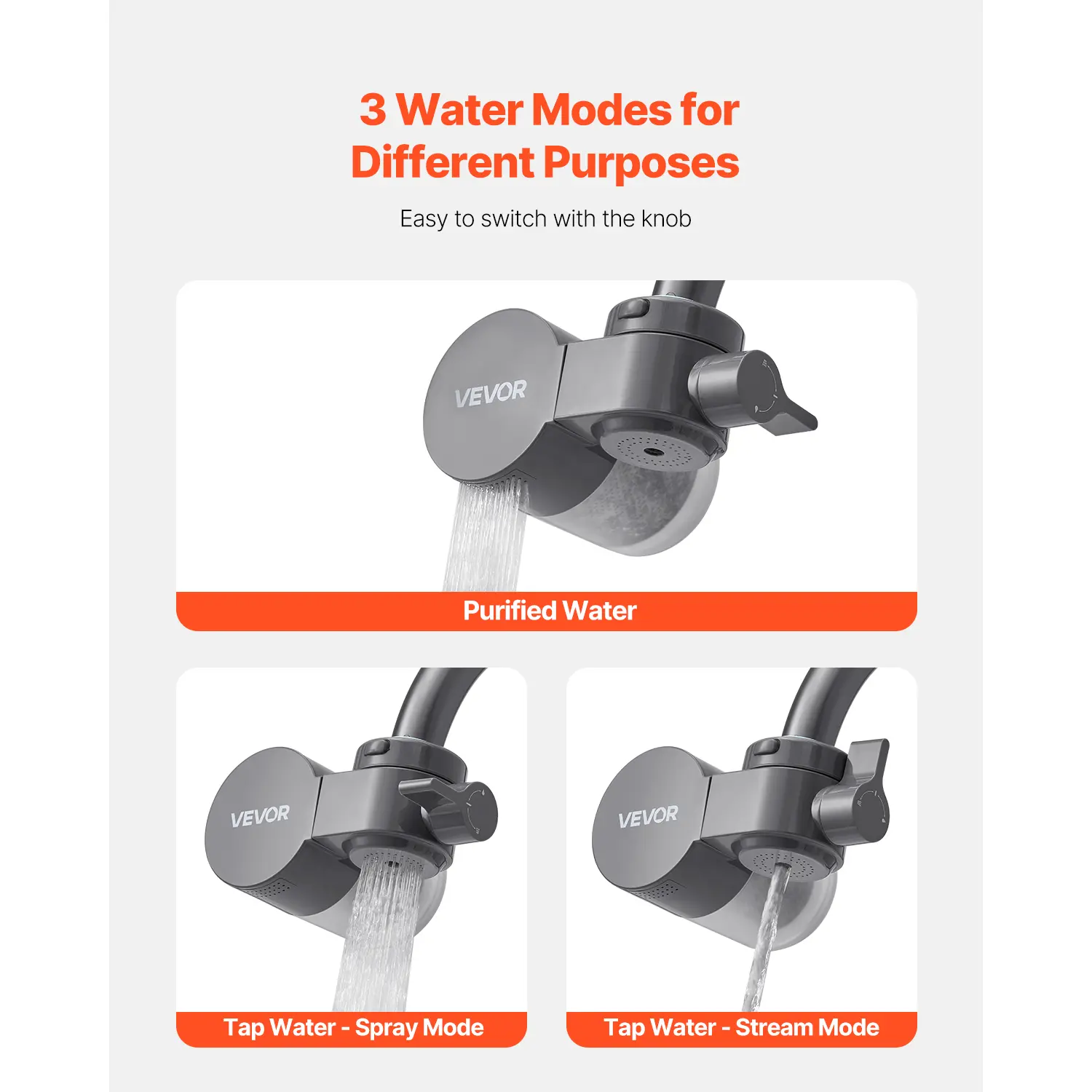 • Easy to Use: The faucet water filter has 3 modes: purified water mode, tap spray mode, and tap stream mode. Simply switch modes with the knob, allowing you to choose freely based on your needs