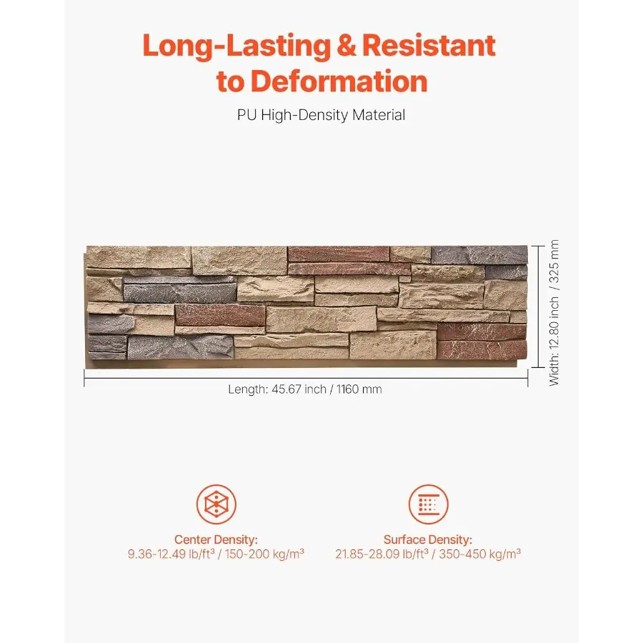 VEVOR Faux Stacked Stone Panel, 45.6x 12.8 in Artificial Stone Wall Panels, High - Density PU Stones Siding Panel, Easy to Cut, Rock Panels for Interior and Exterior Decorations, Brick Red