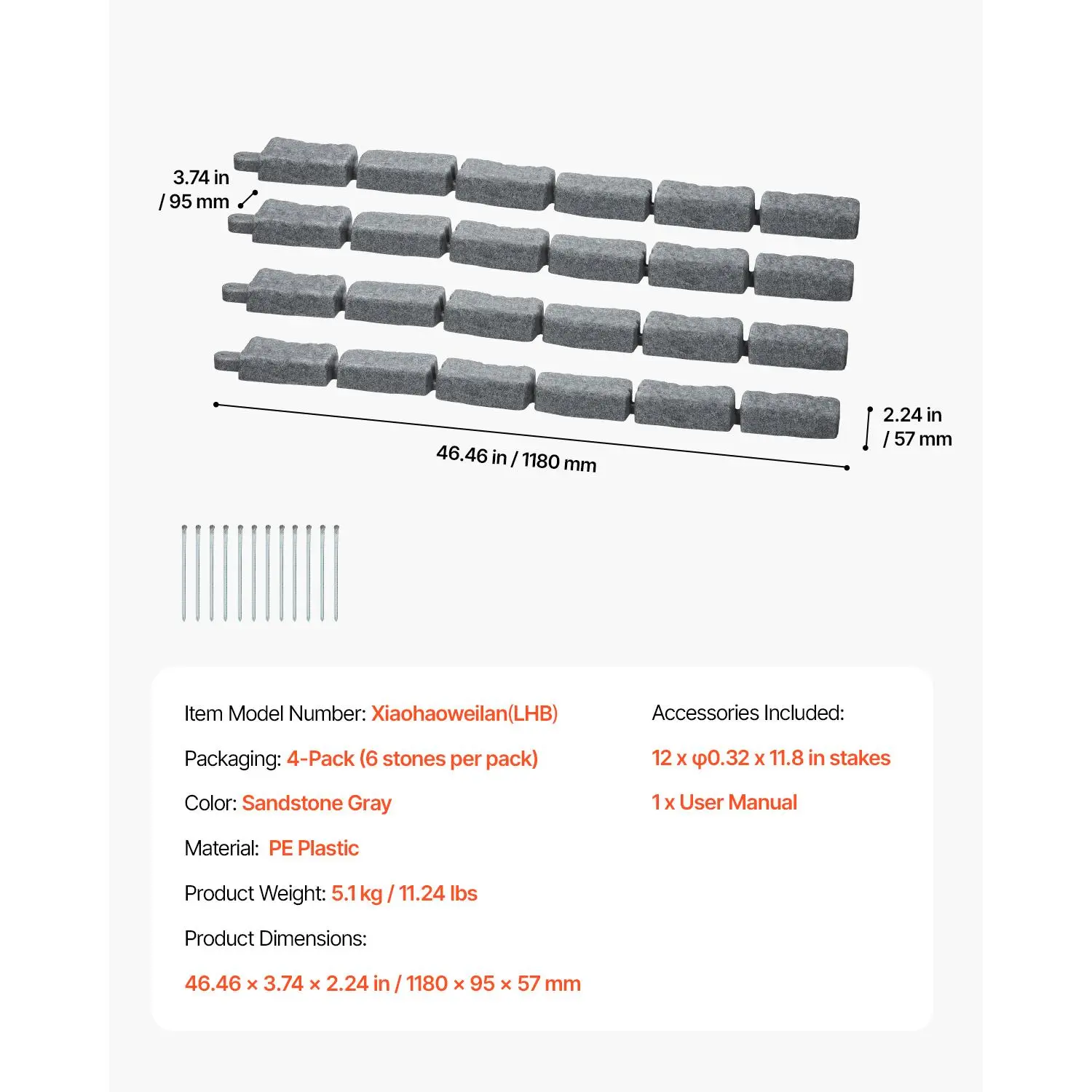 • Realistic Stone Texture: Our stone landscape edgings feature a lifelike stone texture design. The raised surface patterns add depth and dimension to your outdoor spaces. Each piece measures 1180x95x57mm/46.46x3.74x2.24in, making them perfect for enhancing pool edges, garden beds, and pathways. These lawn edging provide a clean, refined look for both large and small spaces.
