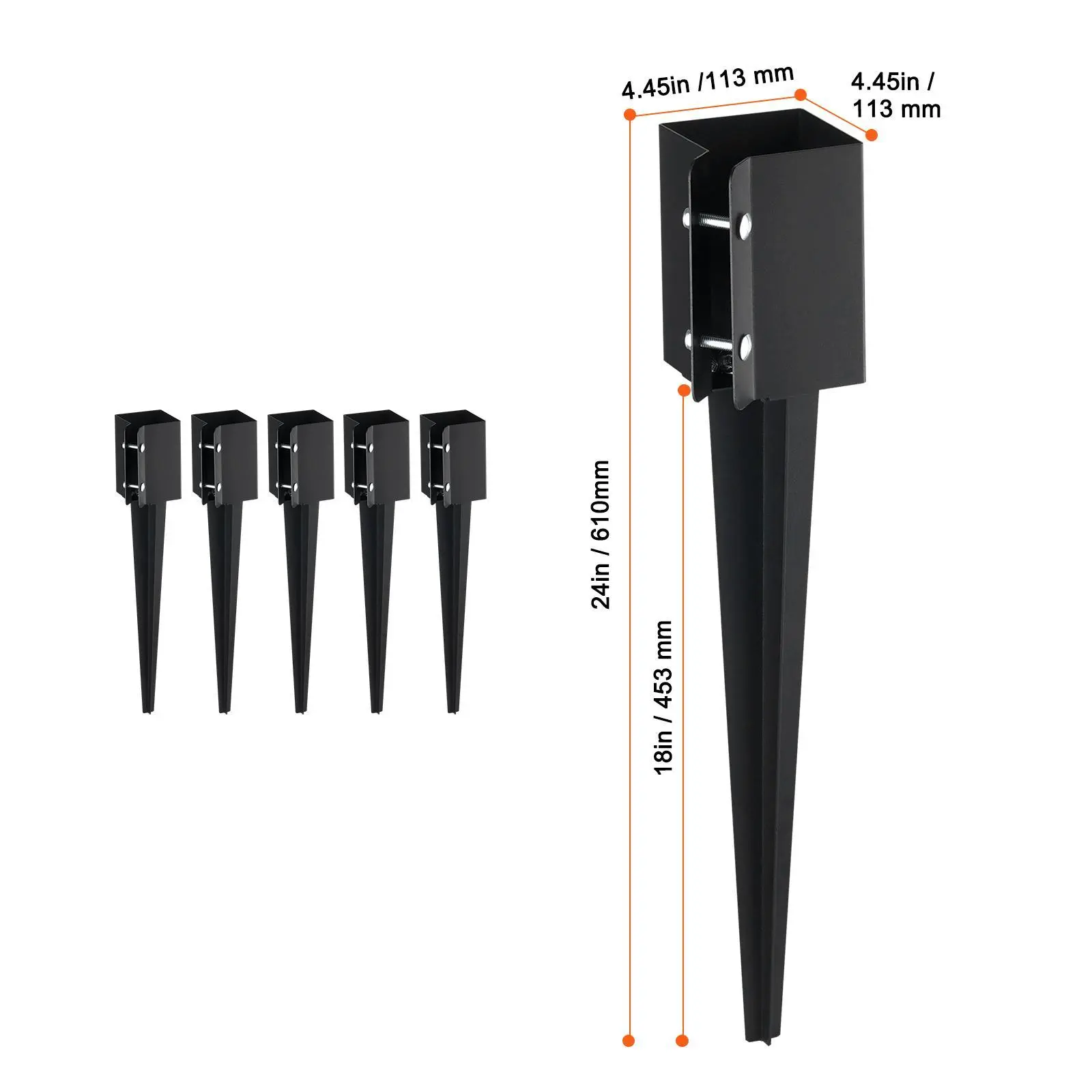 • Fits 3.5” Wood: The square spike has a total height of 24 inches, a nail length of 18 inches, and an inner width of 3.5 inches. It is suitable for 3.5” x 3.5” square timber, providing excellent support.