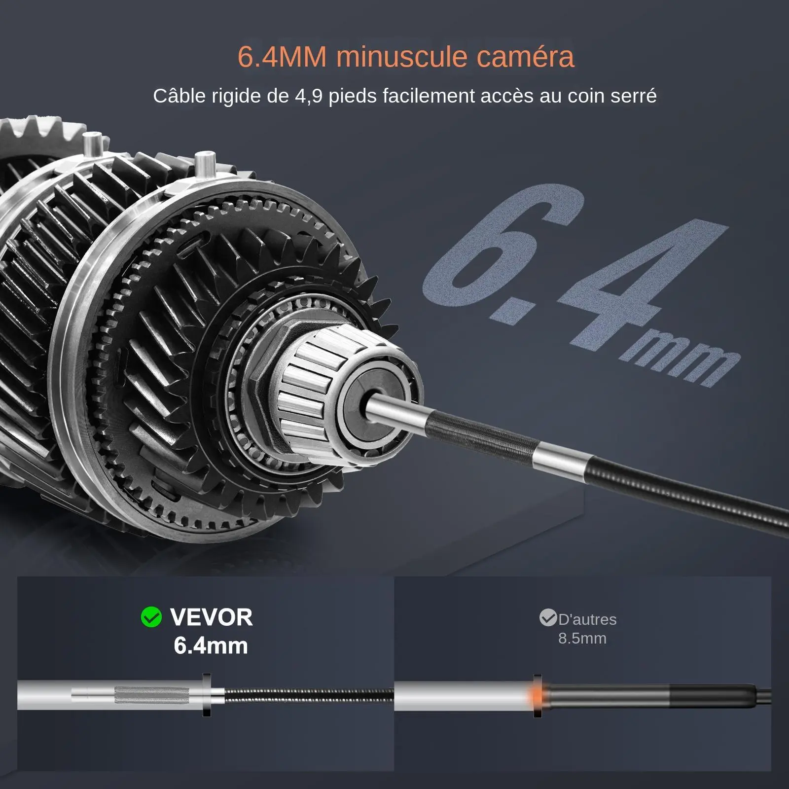 5. VEVOR Flexible Borescope Camera, , Dual-Articulation Endoscope with 6.4mm Slim Lens, 5-inch IPS HD Display, 8X Magnification, 8 LED Illumination Snake Camera for Car Maintenance, Plumbing
