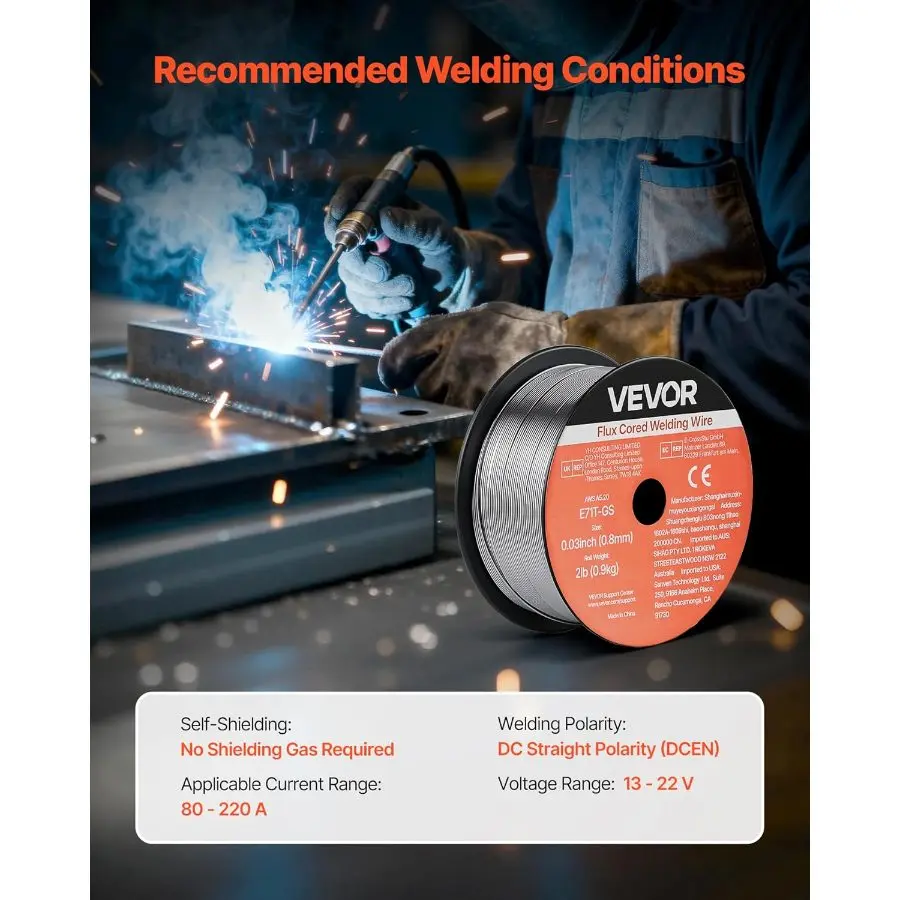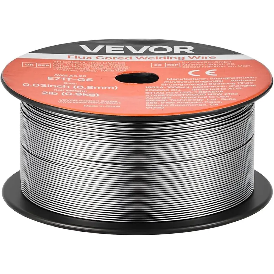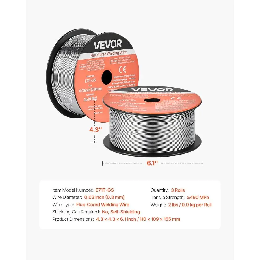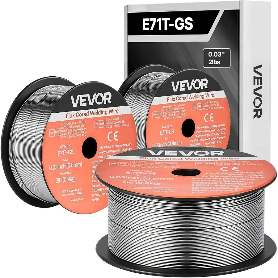 5. VEVOR Flux Core MIG Welding Wire, E71T - GS 0.035 - inch 2 LBS, Gasless Mild Steel Welding Wire with Low Spatter for All Position Arc Welding, Self - Shielded for Outdoor Use (Pack of 3 Rolls)