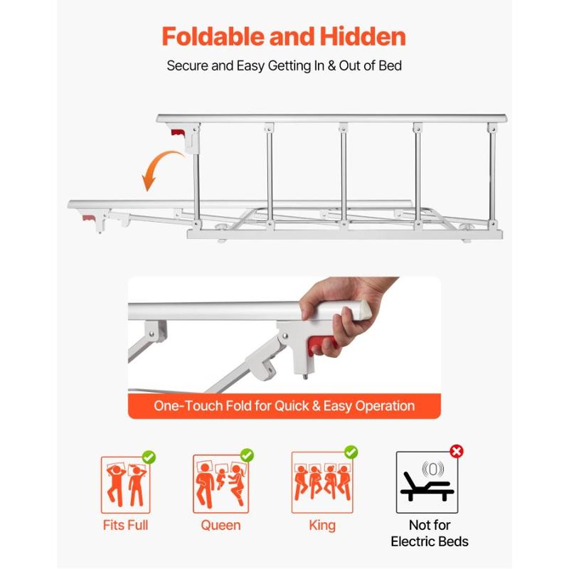 VEVOR Foldable Bed Rail for Elderly, 38 in Bedside Assist Rail with Fixing Strap, Adjustable Height Pipe Bedside Cane, High - Strength Metal Senior Bed Bar, Hand Guard Grab Fits King, Queen, Full, TwinVEVOR Foldable Bed Rail for Elderly, 48 in Bedside Assist Rail with Fixing Strap, Adjustable Height Pipe Bedside Cane, High-Strength Metal Senior Bed Bar, Hand Guard Grab Fits King, Queen, Full, Twin Foldable Design Flexible Use Secure & Reliable Excellent Stability Easy