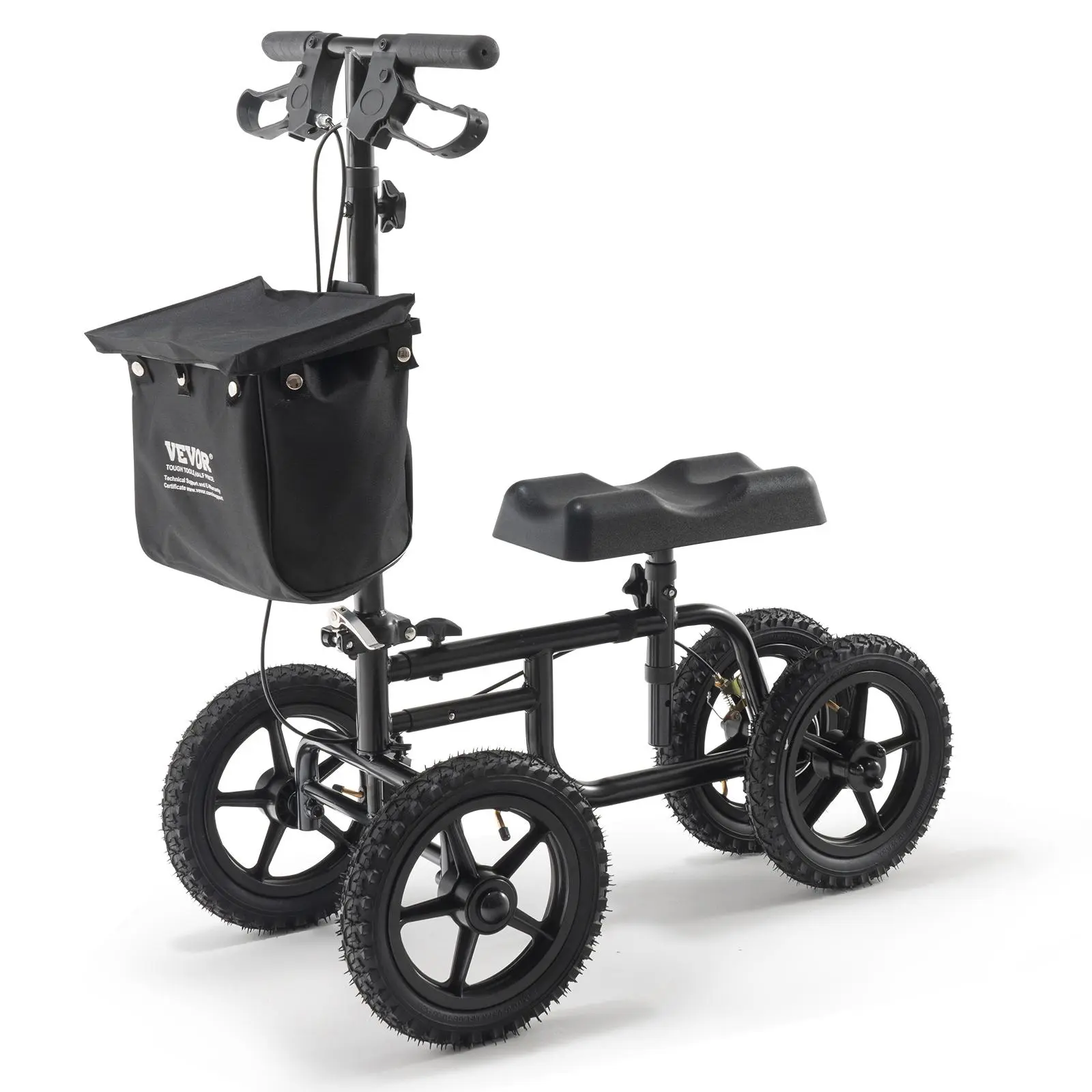 • Safety On Every Ride: Equipped with easy-grip handlebars and a dual rear braking system, VEVOR heavy-duty carbon steel knee scooter prioritizes safety and control. Simply activate the hand brakes at the handlebars for quick stopping and effortless control of the roller, ensuring a safe and comfortable journey.