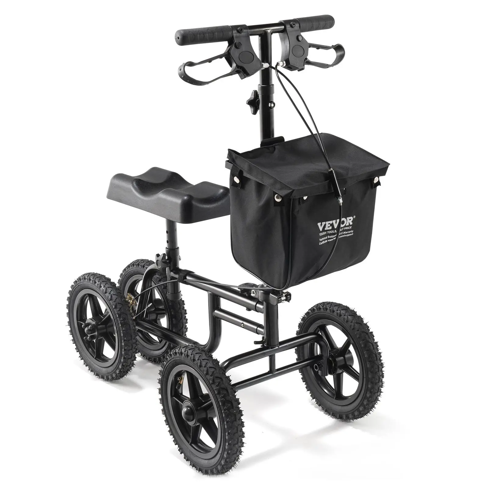 • Safety On Every Ride: Equipped with easy-grip handlebars and a dual rear braking system, VEVOR heavy-duty carbon steel knee scooter prioritizes safety and control. Simply activate the hand brakes at the handlebars for quick stopping and effortless control of the roller, ensuring a safe and comfortable journey.