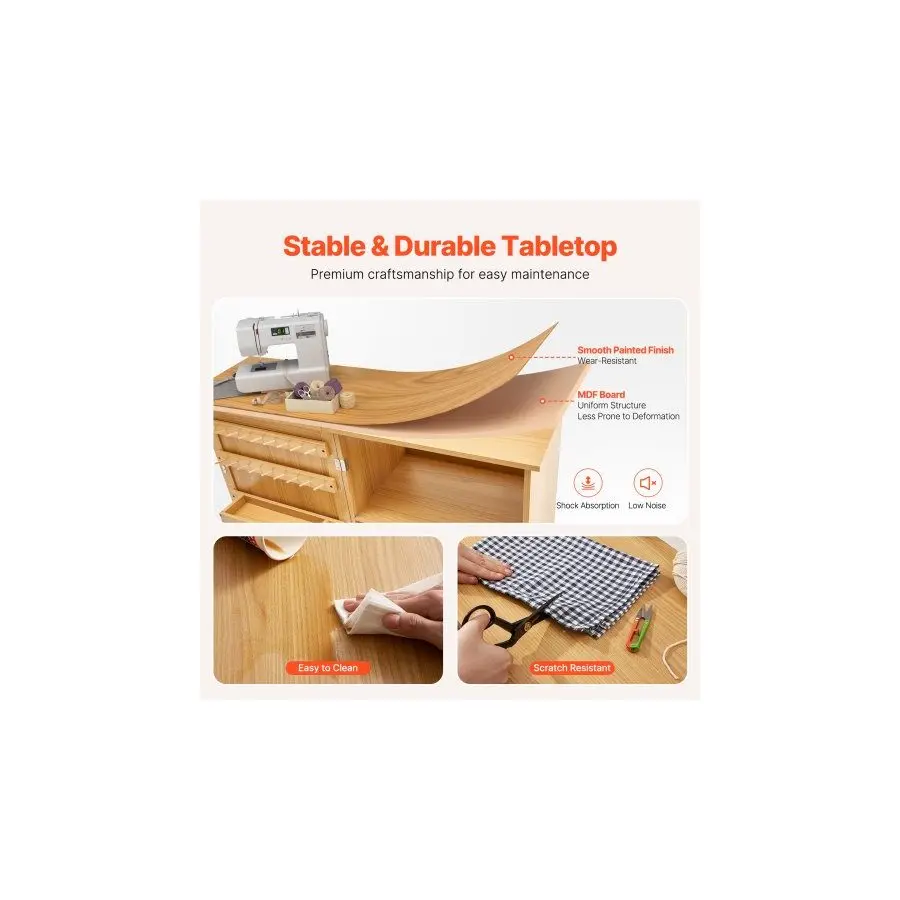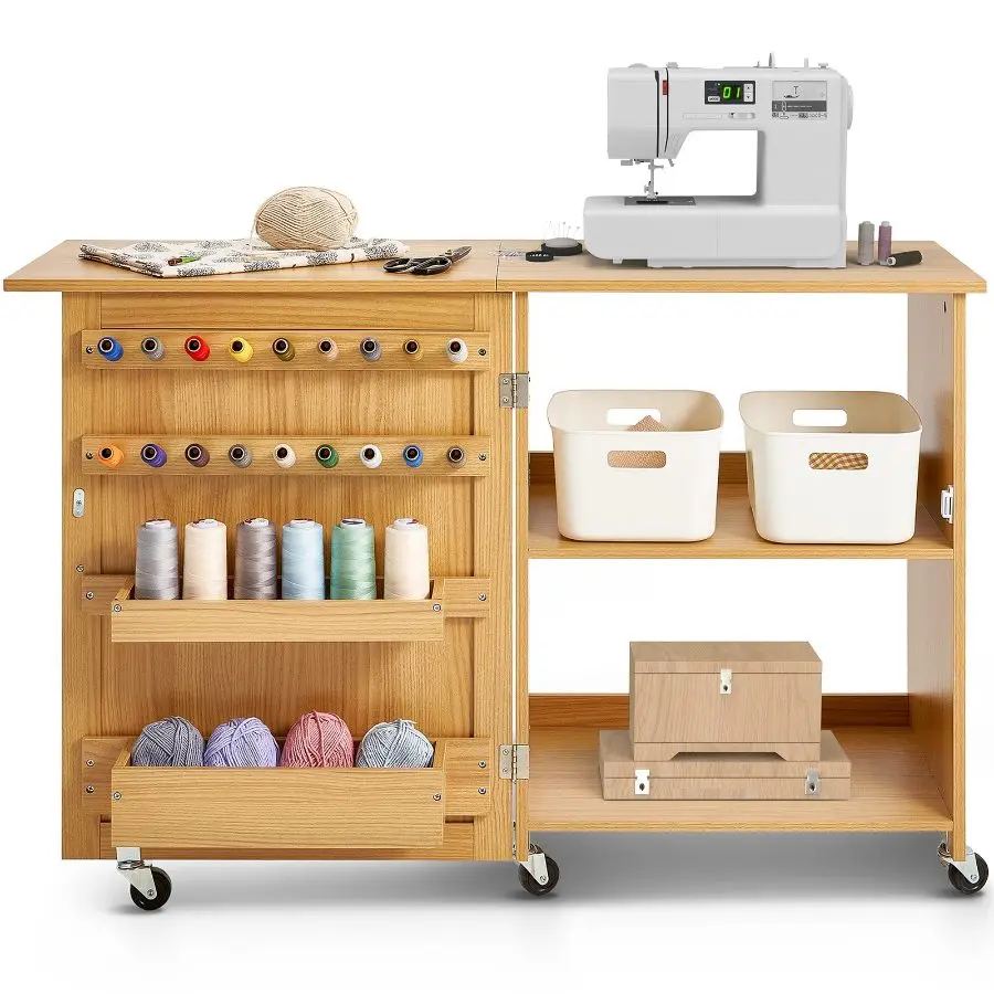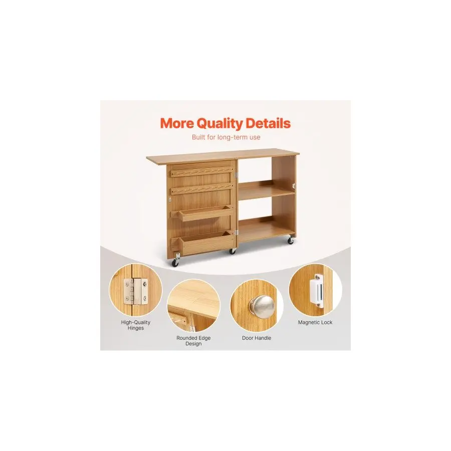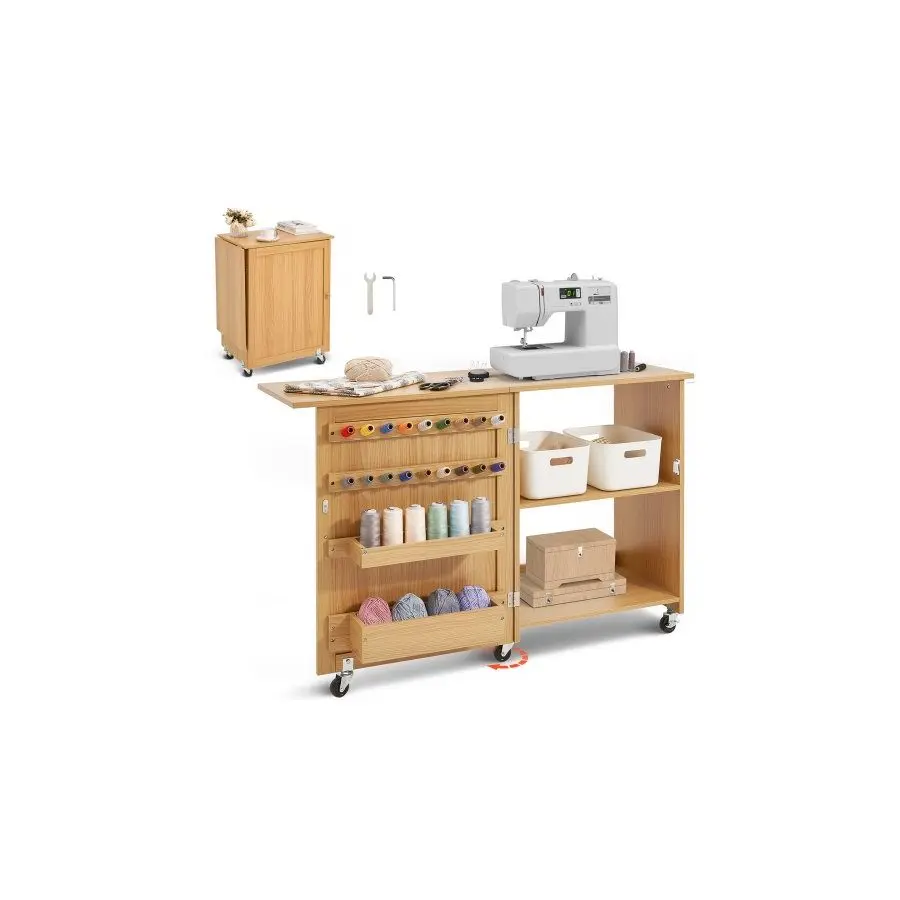 VEVOR Folding Sewing Table, Multipurpose Sewing Machine Table with Compact Design, Wheels, Shelves, Storage Trays, Wooden Pegs, and Magnetic Doors, Sewing Desk Cabinet for Sewing Machine, Wood ColorVEVOR Folding Sewing Table, Multipurpose Sewing Machine Table with Compact Design, Wheels, Shelves, Storage Trays, Wooden Pegs, and Magnetic Doors, Sewing Desk Cabinet for Sewing Machine, Wood Color
