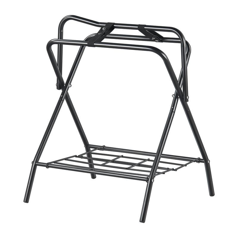 Saddle Up with Ease: This sturdy rack holds up to 132 lbs, perfect for English and Western saddles. Stack three saddles with rock-solid support! Dimensions: 28 x 19 x 37.5 in.