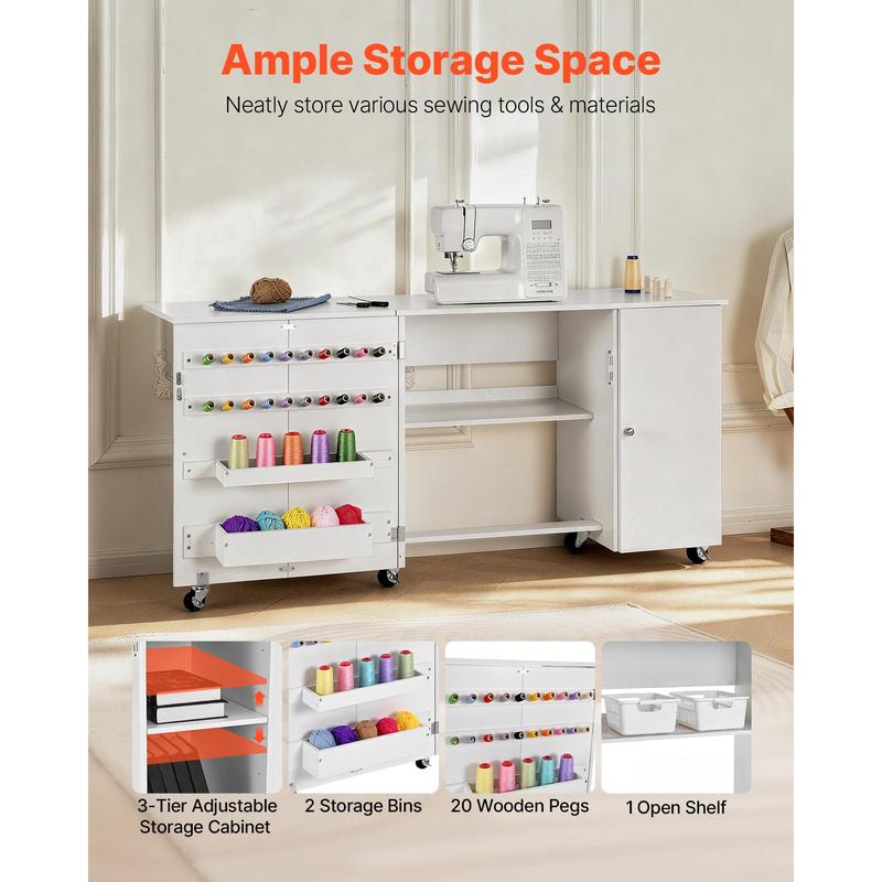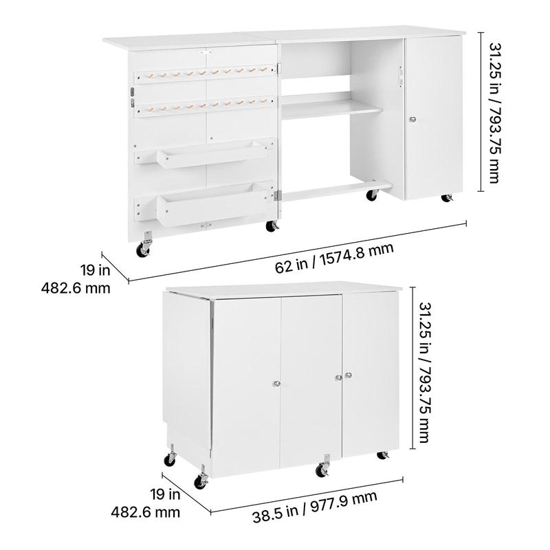 • Foldable Design: Our sewing machine table features a flexible foldable design that provides a spacious working area when unfolded. When not in use, it folds into a compact side cabinet that takes up little space and fits in any corner for storage