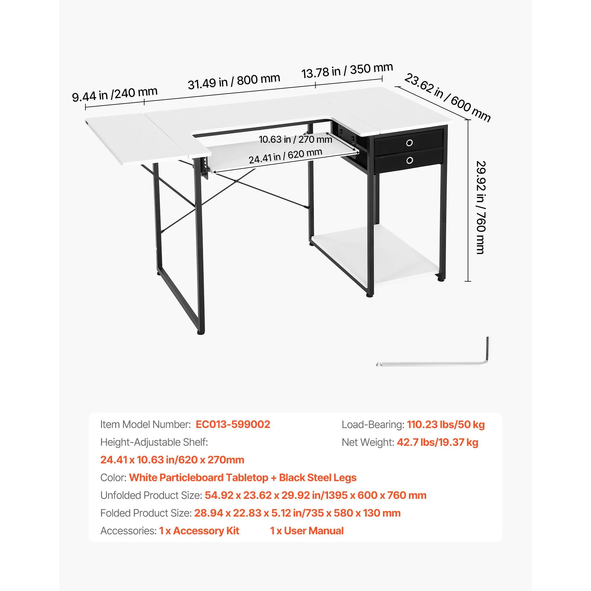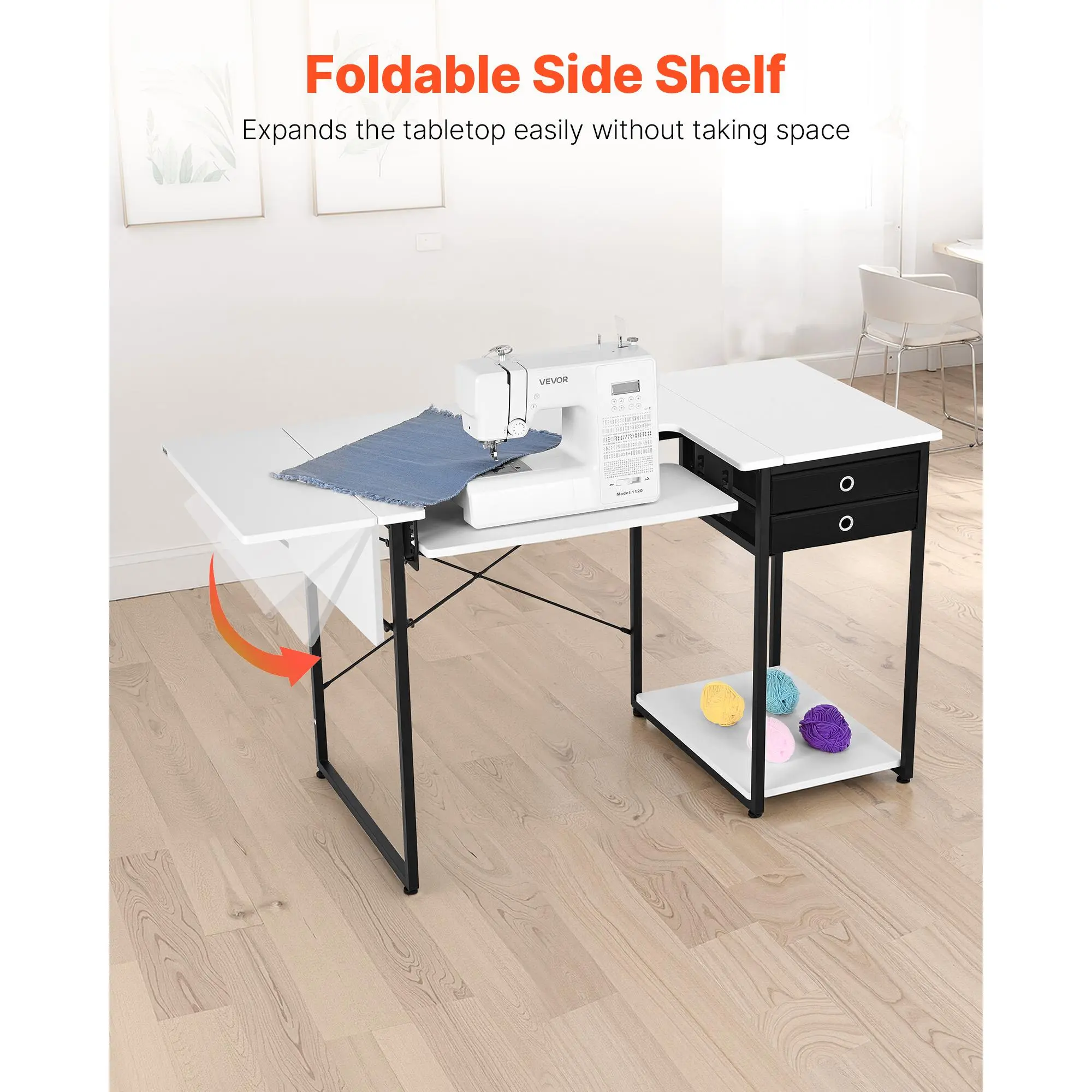 • Expandable Side Shelf: This folding sewing table includes foldable side shelves. Unfold to instantly expand the work surface for more space, and fold it up when not in use to save extra space. It is ideal for large sewing projects or tool storage