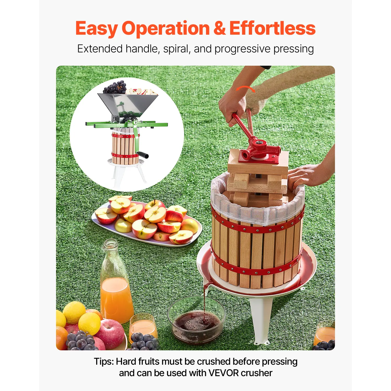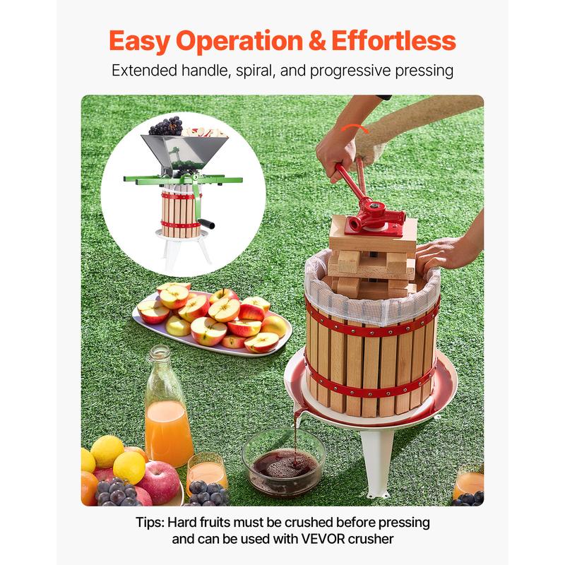 • Large Capacity: The 12L/3.2-gallon large-capacity design is ideal for family gatherings, parties, wineries, and farms to conveniently produce abundant juice. The hard fruits must be crushed before pressing, and can be used with VEVOR crusher