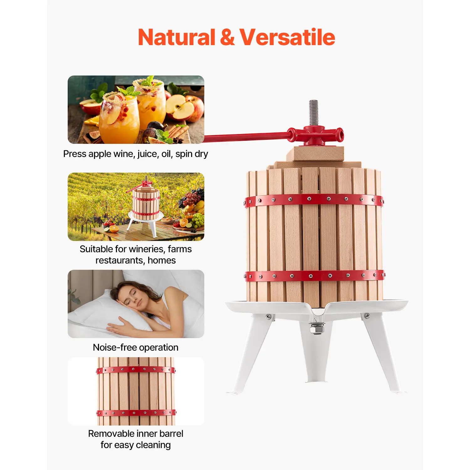 • Versatile Use: This wine press can be used to press various fruits for fresh, healthy juice, as well as for pressing fruit wine, cheese, fruit pulp, olive oil, and more. It is suitable for family gatherings, restaurants, wineries, farms, and fresh juice shops