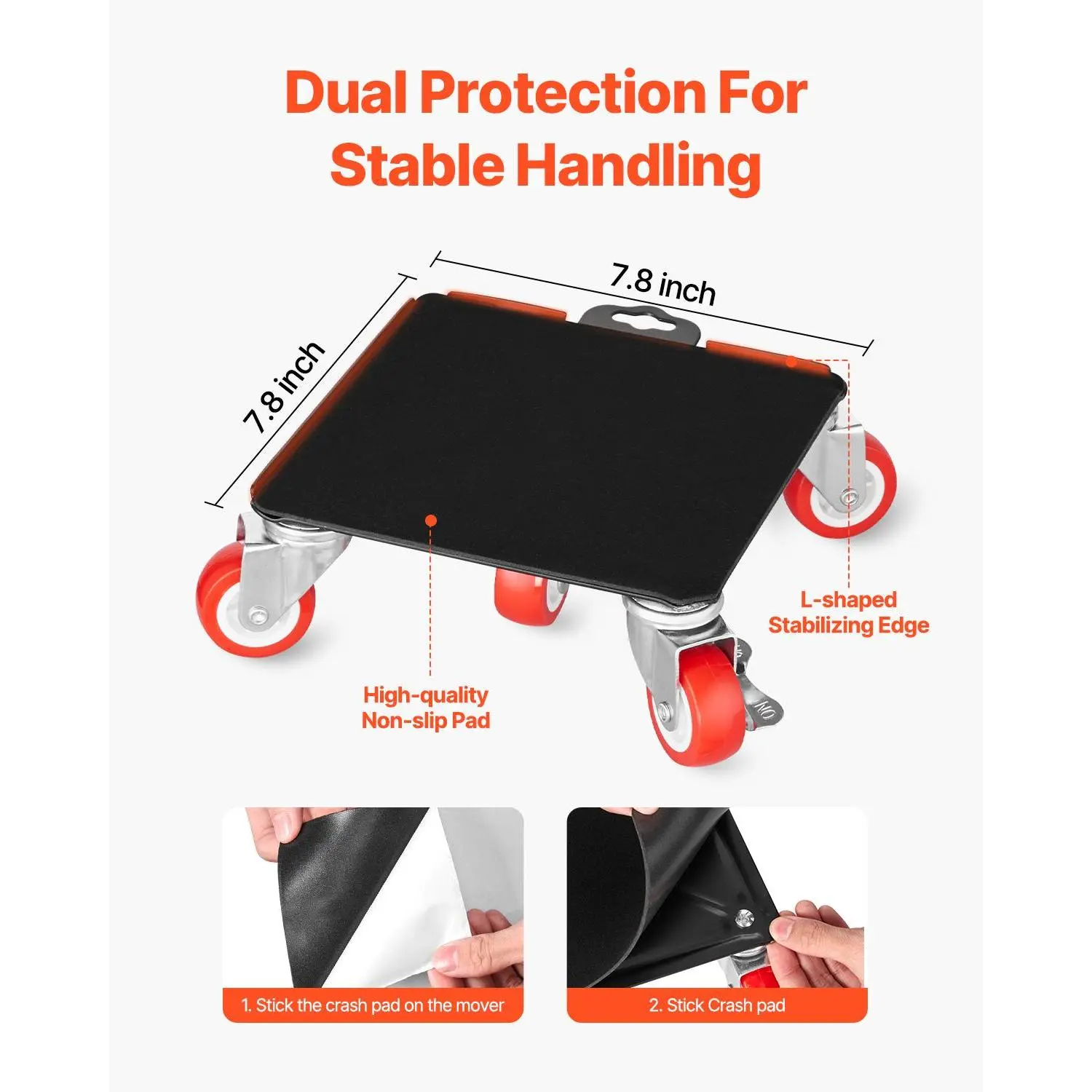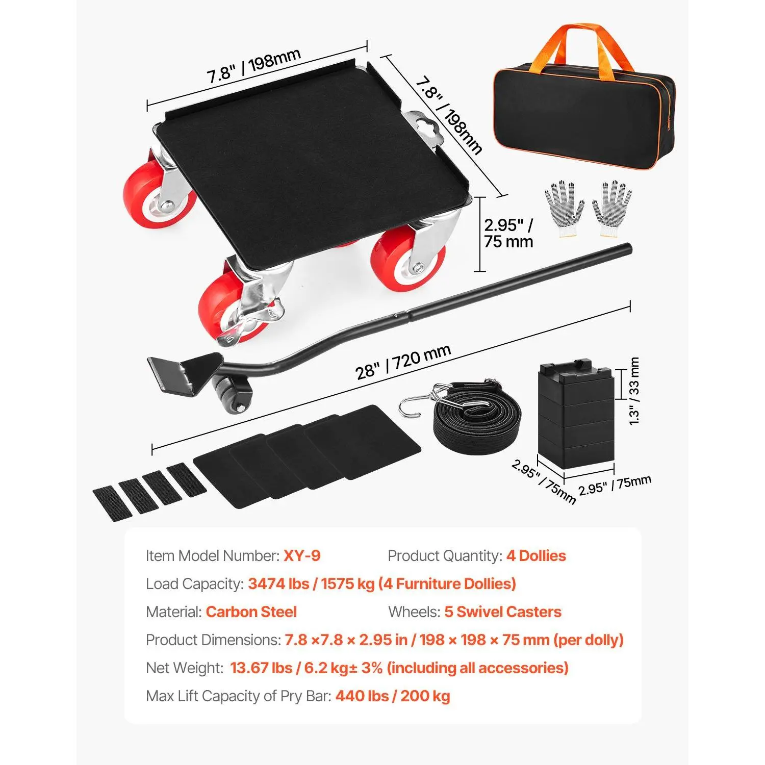 • Ultra-Strong Load Capacity: Utilizing all four furniture dollies together, you get a remarkable 3474 lbs load capacity. Made from high-strength carbon steel, the sturdy structure of our furniture mover ensures reliable stability when moving heavy items like sofas and refrigerators. Designed for long-term use without deformation, the furniture movers for heavy furniture are ideal for home moves, deep cleaning, and warehouse organization.