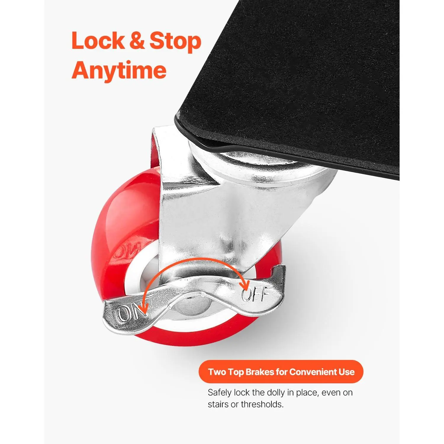 • One-Click Braking: Equipped with dual brakes, a simple push locks the heavy duty furniture dolly in place, avoiding unintended movement. This ensures security during transport and while parked, allowing you to temporarily set down furniture to open doors or retrieve other items.