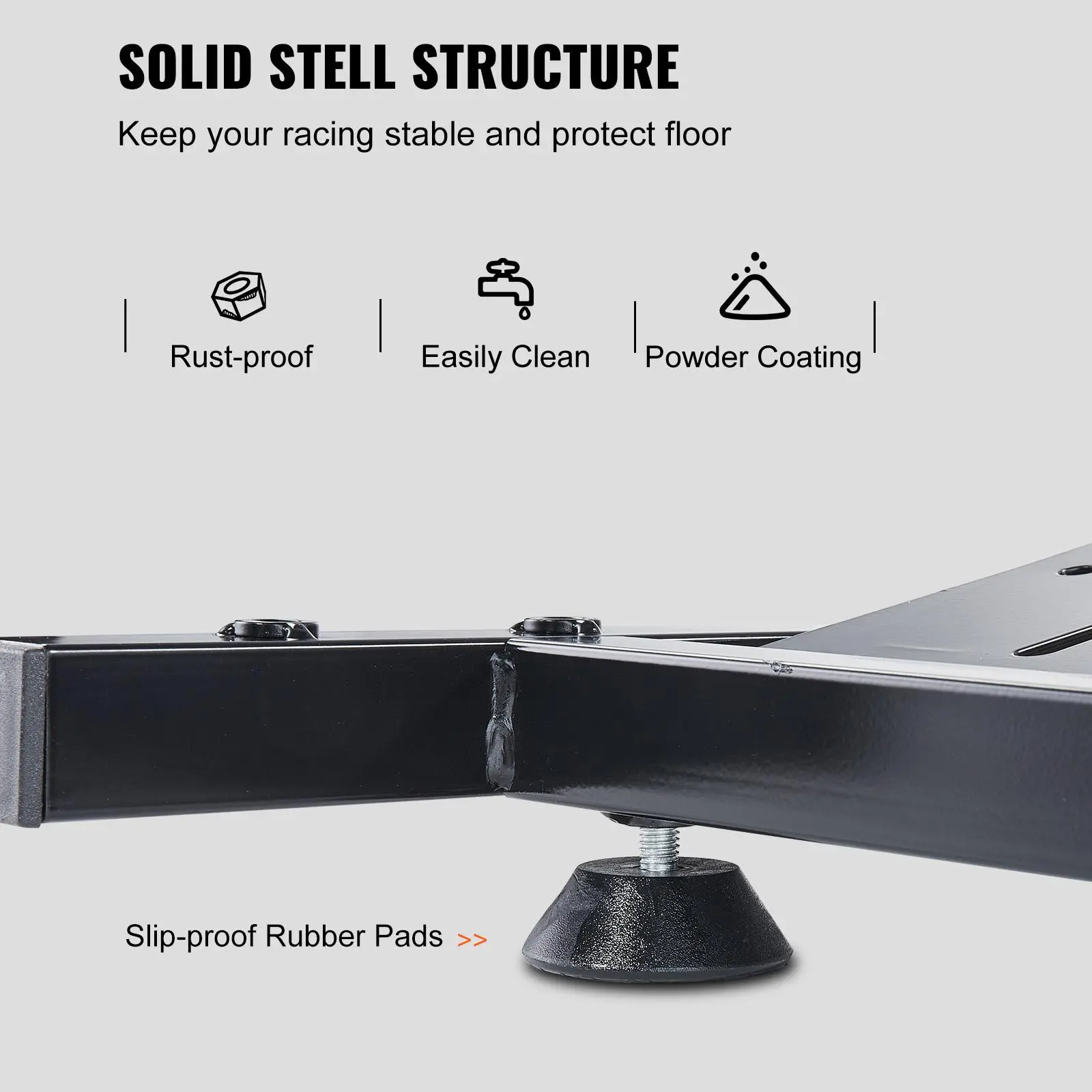 • Durable Wheel Stand: This wheel racing stand is constructed with high-strength carbon steel, providing maximum stability and sturdiness for long time use. Such a heavy-duty bracket will not move or fall in the fierce competition. In addition, each supporting point comes with rubber pads to improve security.