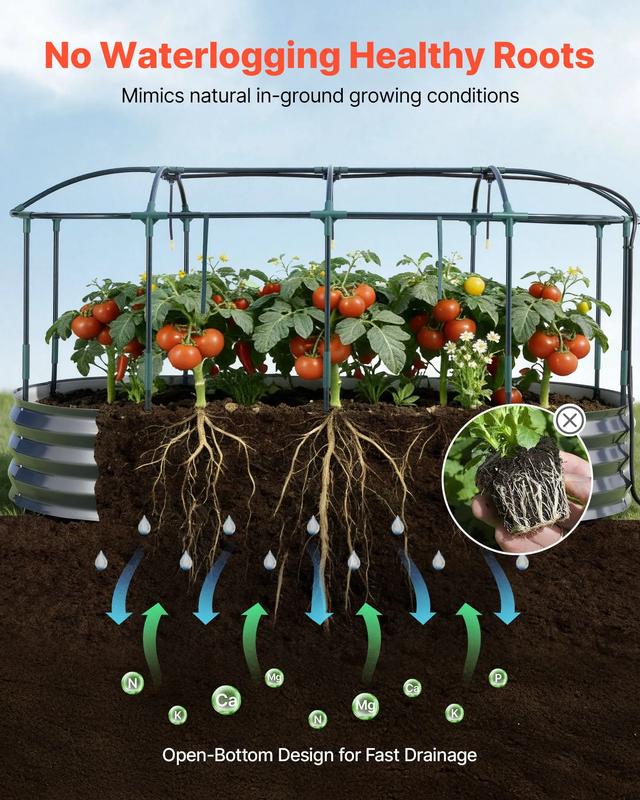 ·Bottomless Design, Fast Drainage: This garden bed features an open-bottom design that allows excess water to drain quickly. It promotes healthy root growth and nutrient absorption and reduces maintenance worries, even during heavy rain or overwatering