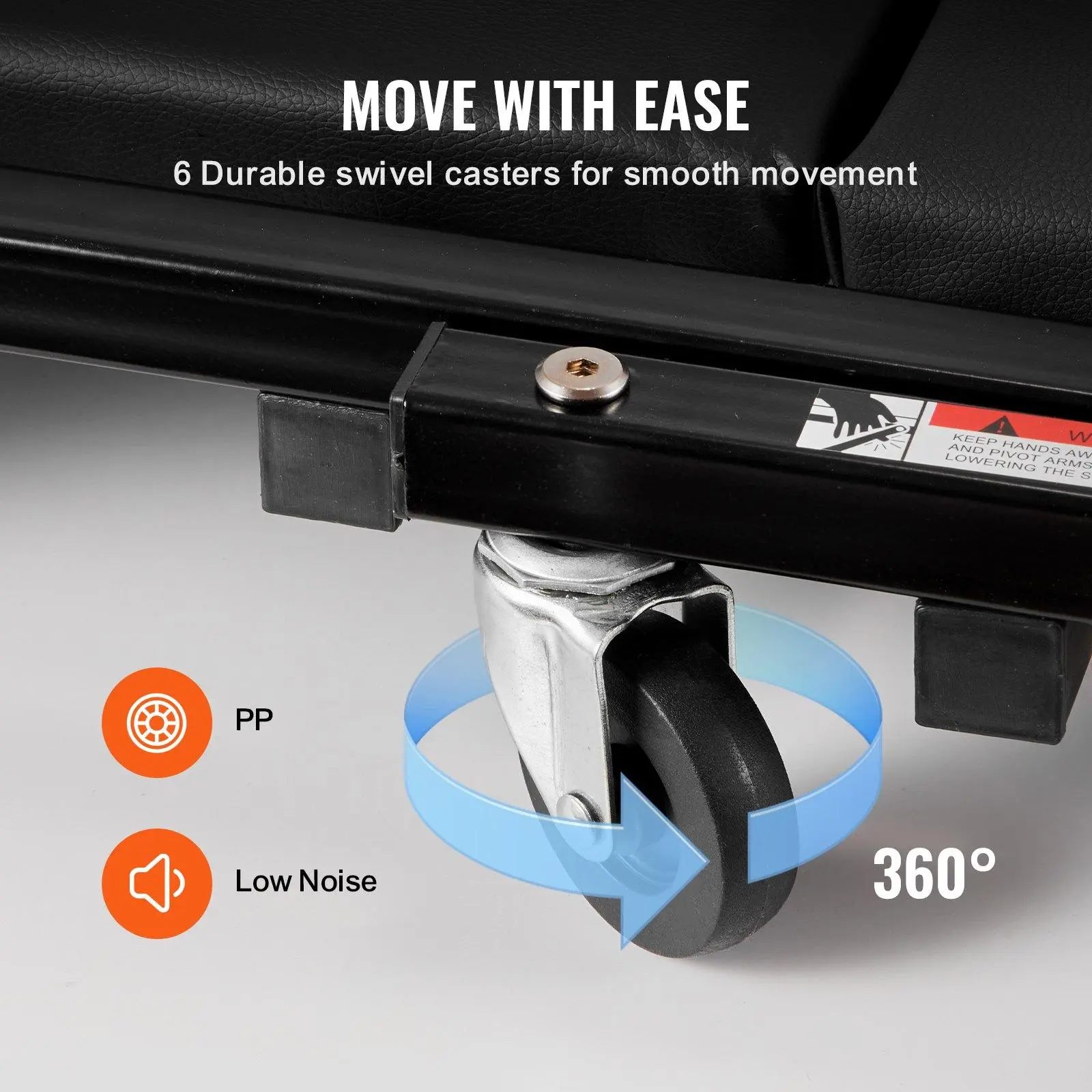 This automotive garage creeper chair built with a low ground clearance and six swivel casters, you can easily glide under tight vehicle spaces. Move effortlessly in any direction, whether side to side or up and down, without straining.