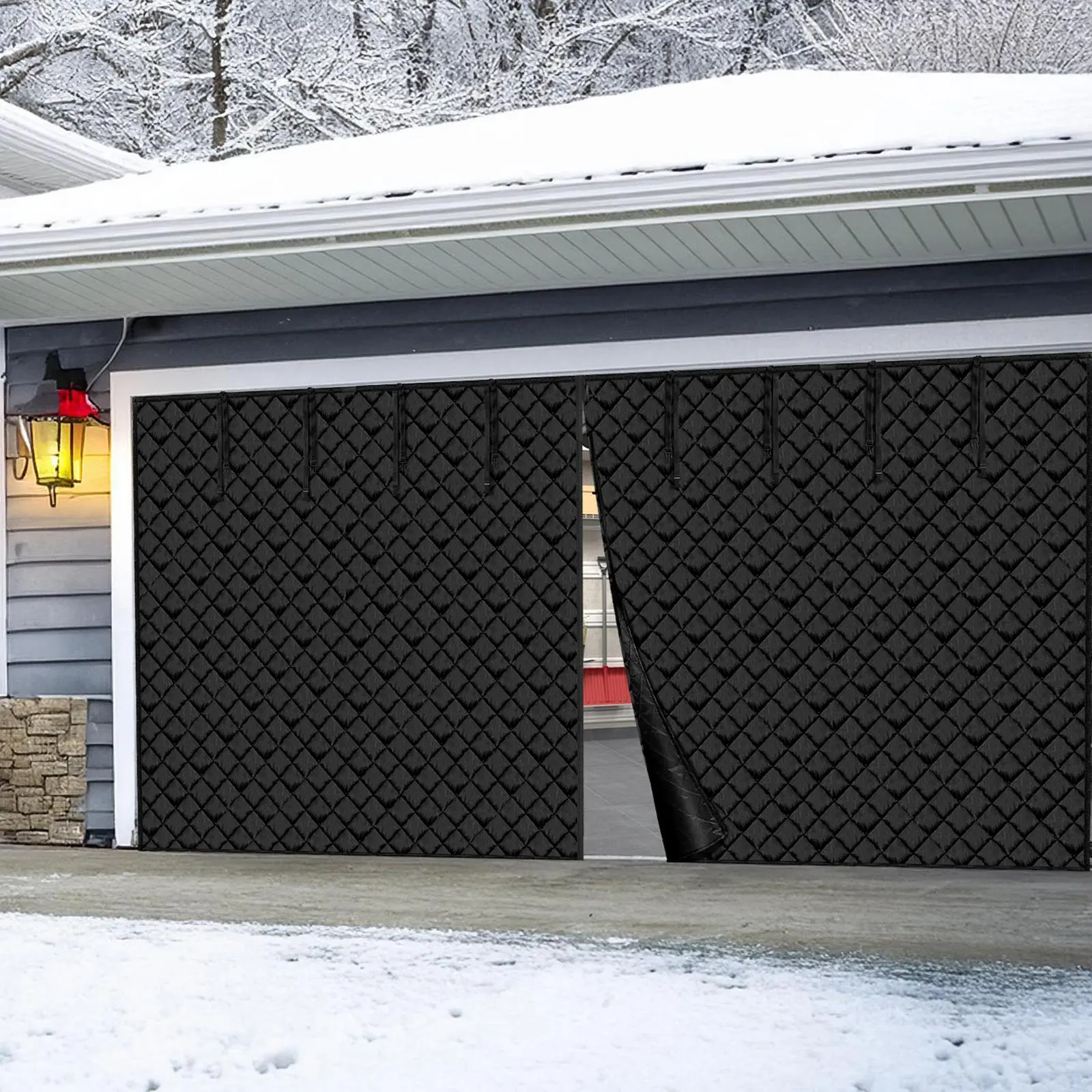 • 300D Oxford Fabric, Advanced Insulation: Crafted from premium 300D Oxford fabric combined with quality cotton, our garage door screen for winter offers superior thermal resistance. Precision stitching and reinforced edges avoid tearing and withstand harsh weather, ensuring year-round energy savings by keeping your space warm in winter and cool in summer.