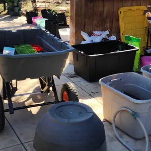 We love this wagon! Moved 6 lbs of potting soil and mulch with ease. Easy to spray out, and great to stand and work as well.