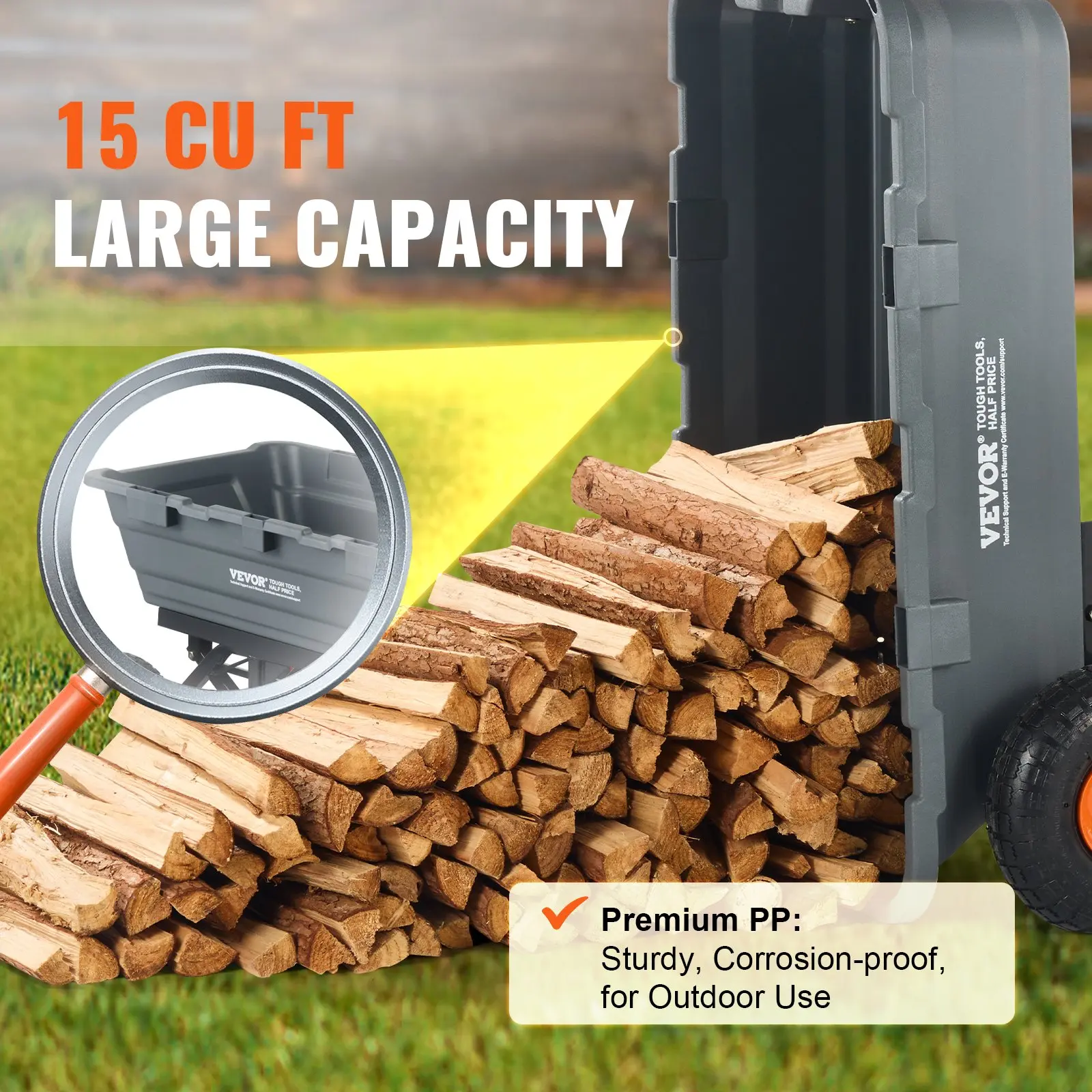 ·Large Tire Size: With 13" rubber tires, the yard cart provides excellent shock absorption, navigating uneven garden terrain or grassy slopes, ensuring smooth transport.