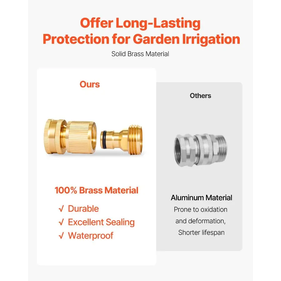 5. VEVOR Garden Hose Quick Connect, 3/4 inch Male Female, 200 PSI Heavy Duty Solid Brass Quick Connector, 2 Sets Garden Hose Fitting, No Leak Water Hoses Connectors with Gaskets