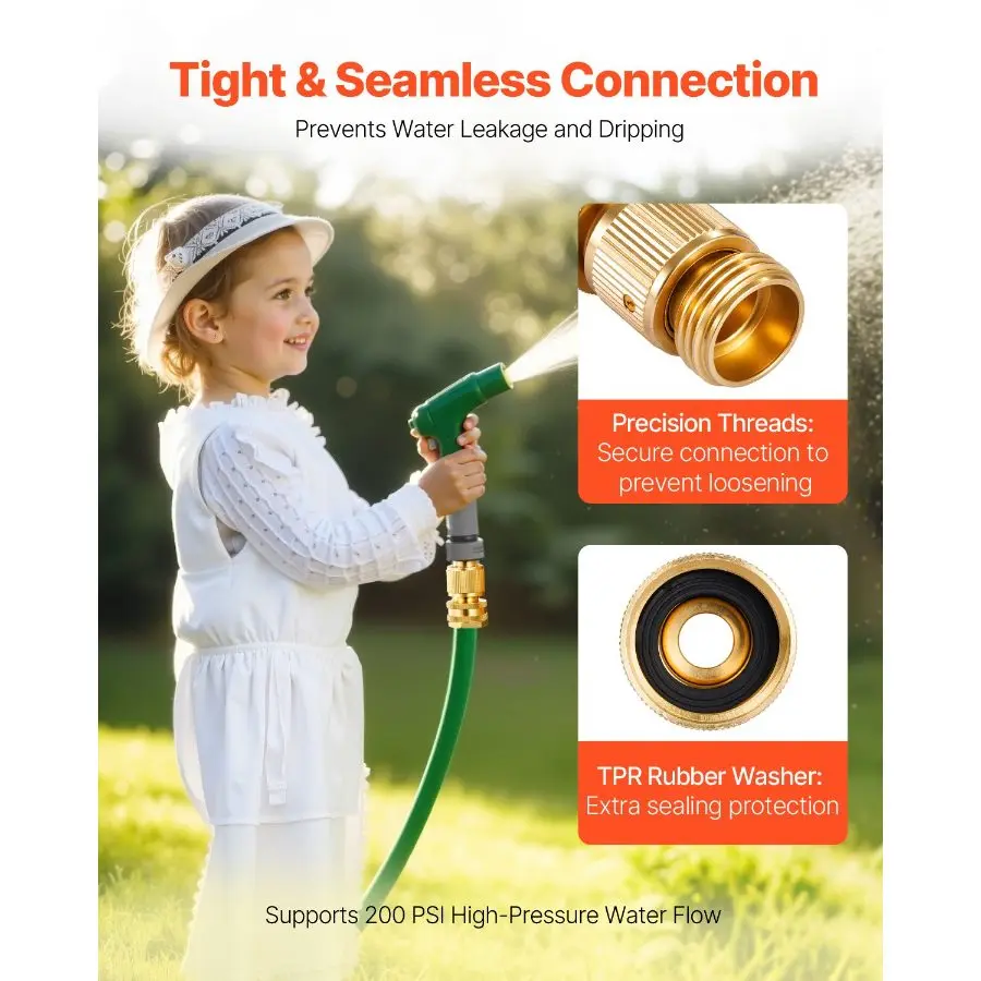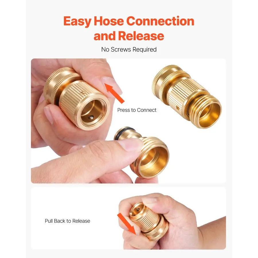 VEVOR Garden Hose Quick Connect, 3/4 inch Male Female, 200 PSI Heavy Duty Solid Brass Quick Connector, 2 Sets Garden Hose Fitting, No Leak Water Hoses Connectors with GasketsVEVOR Garden Hose Quick Connect, 3/4 inch Male & Female, 200 PSI Heavy Duty Solid Brass Quick Connector, 2 Sets Garden Hose Fitting, No Leak Water Hoses Connectors with Gaskets Universal Garden Hose Quick Connector Flexible Switching Durable & Long-lasting Easy to Use Versatile Use Package