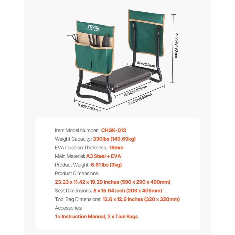 • Dual Tool Bags for Organization: The garden bench for kneeling and sitting features two durable 600D Oxford fabric tool bags that keep gardening essentials like scissors, gloves, and small trowels within easy reach. No need to constantly get up to find tools—this feature enhances efficiency and allows for a more productive gardening experience.