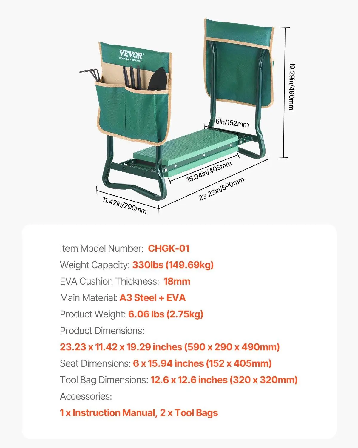 💪 Supports up to 330 lbs, built with high-strength A3 steel and a powder-coated finish. Ensures stability and durability. Ideal for gardening, household chores, and any activity requiring strong support. This sturdy bench is a reliable choice for various uses.