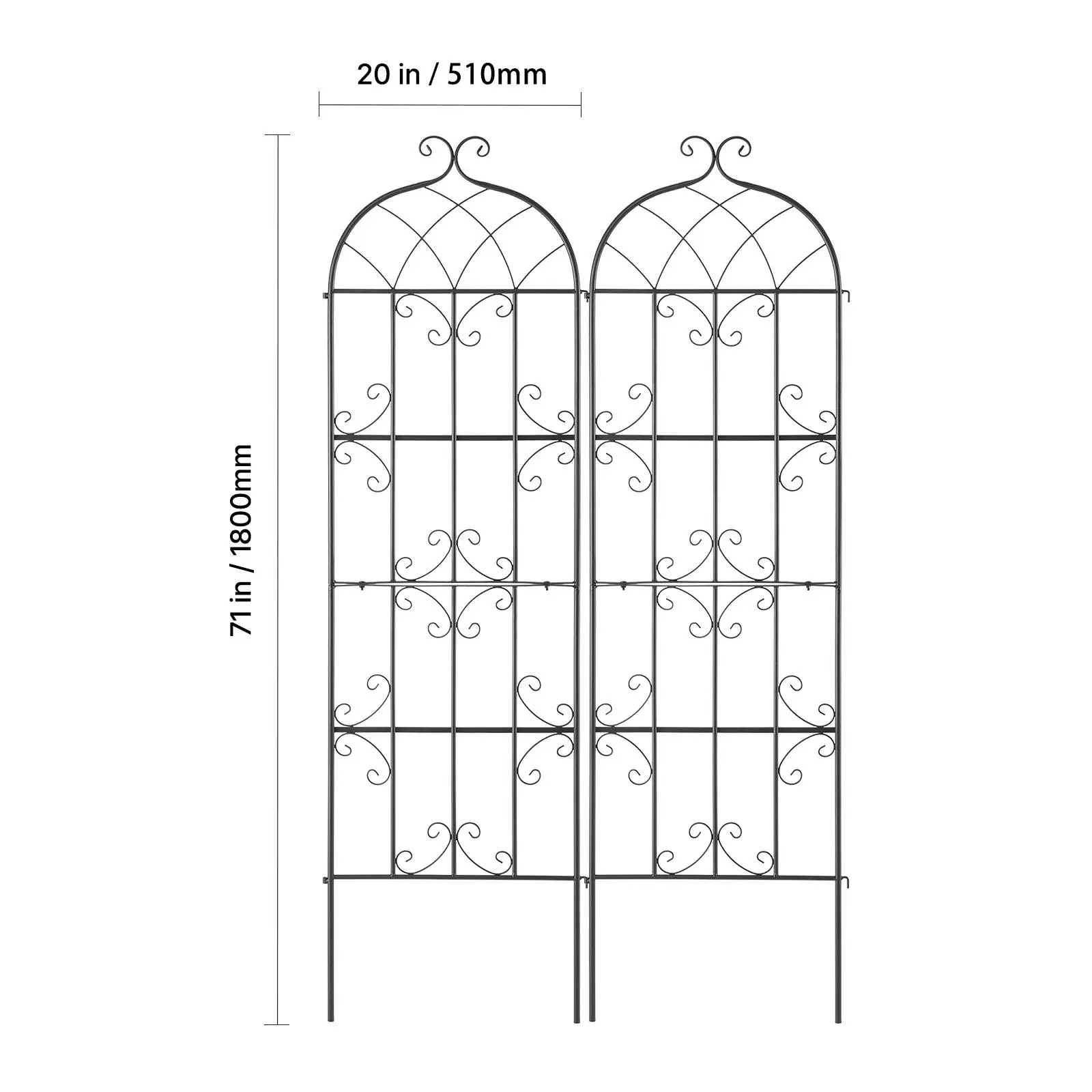 5. VEVOR Garden Trellis for Climbing Plants, 71 x 20 in, 2 Packs Rustproof Metal Garden Flower Trellis, Outdoor Climbing Rose Trellis Cucumbers Support, Decorative Clematis Trellis for Courtyards Lawns