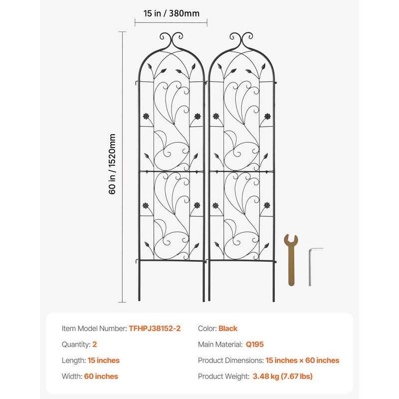 5. VEVOR Garden Trellis for Climbing Plants, TikTokShopBlackFriday, 60 x 15 in, 2 Packs Rustproof Metal Garden Flower Trellis, Outdoor Climbing Rose Trellis Cucumbers Support, Decorative Clematis Trellis for Courtyards Lawns