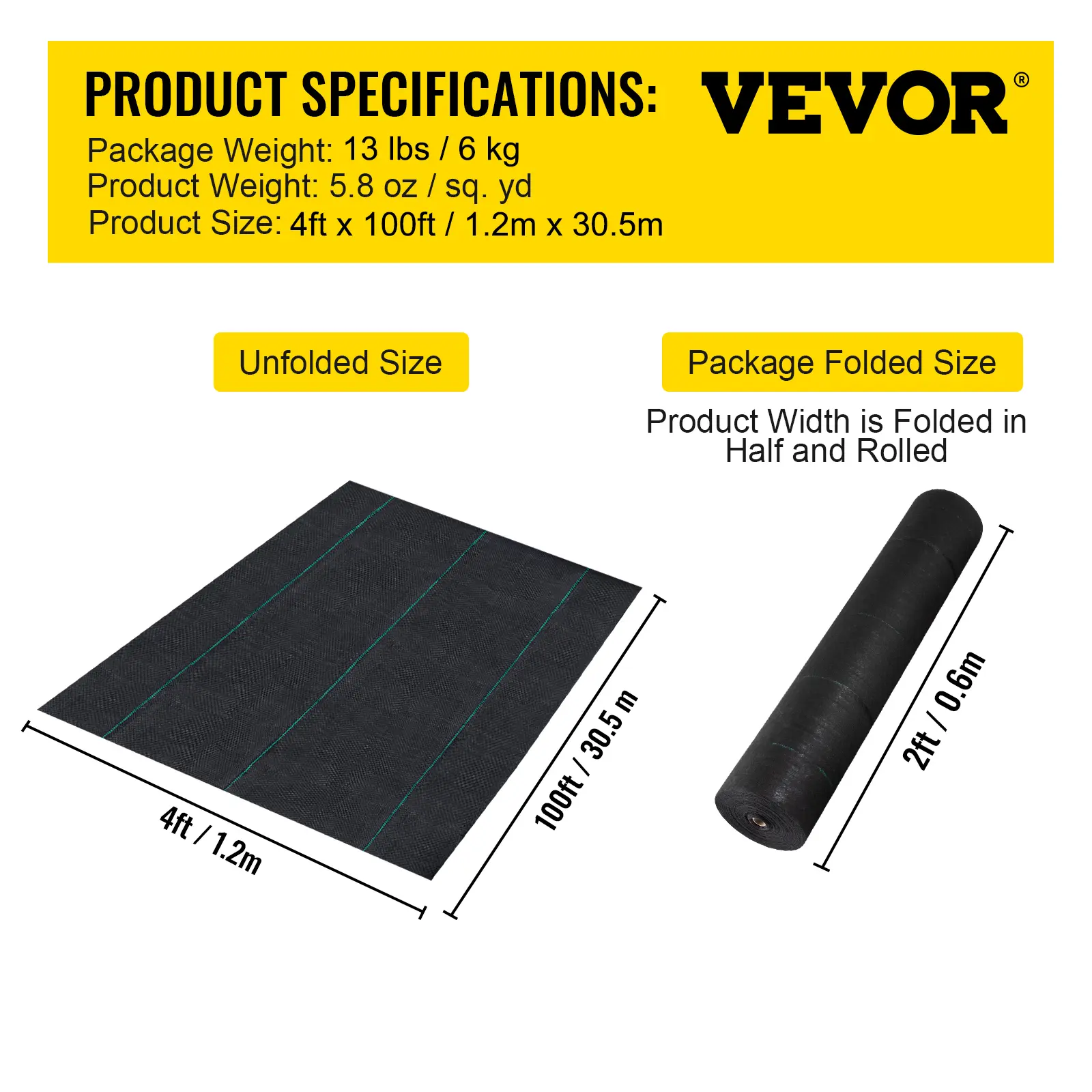• Heavy-duty PP Material: This landscape weed barrier fabric is made of 5.8oz high density is woven needle punched dual-layer and professional-grade polypropylene, tear-proof, easy to cut, and degradable. Size: 4 x 100 ft / 1.2 x 30.5 m.