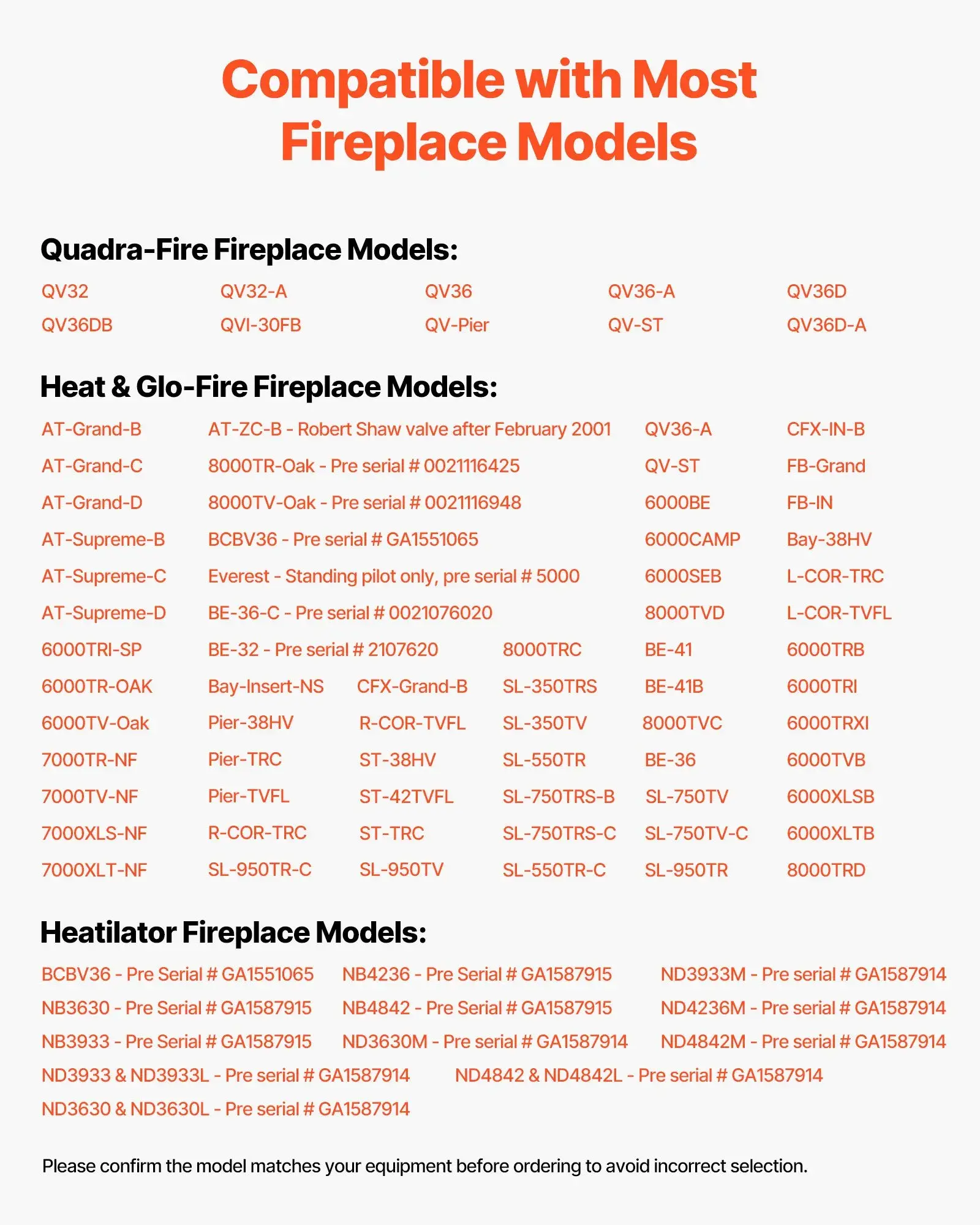 Compatible with most mainstream fireplaces, home water heaters, and kitchen stoves. Easy installation with standard tubing diameters and wires. Replace old parts and install new ones. Includes a one-year warranty.
