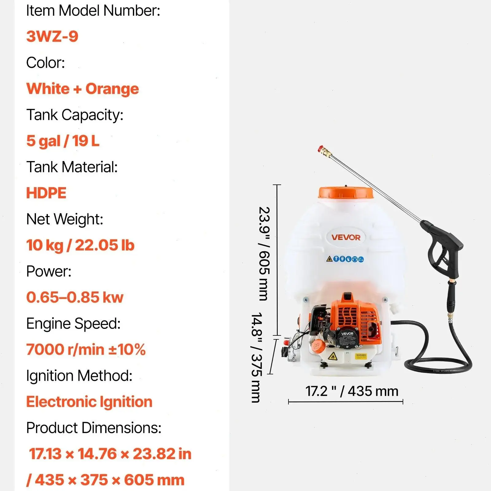 4. VEVOR Gas Powered Backpack Sprayer, 26.5CC 0.9HP Engine, Garden Sprayer with 5 Gallon Tank, Large Area Coverage, Lawn Spraying Machine with 24 in Wand & Nozzles for Efficient Gardening & Farming