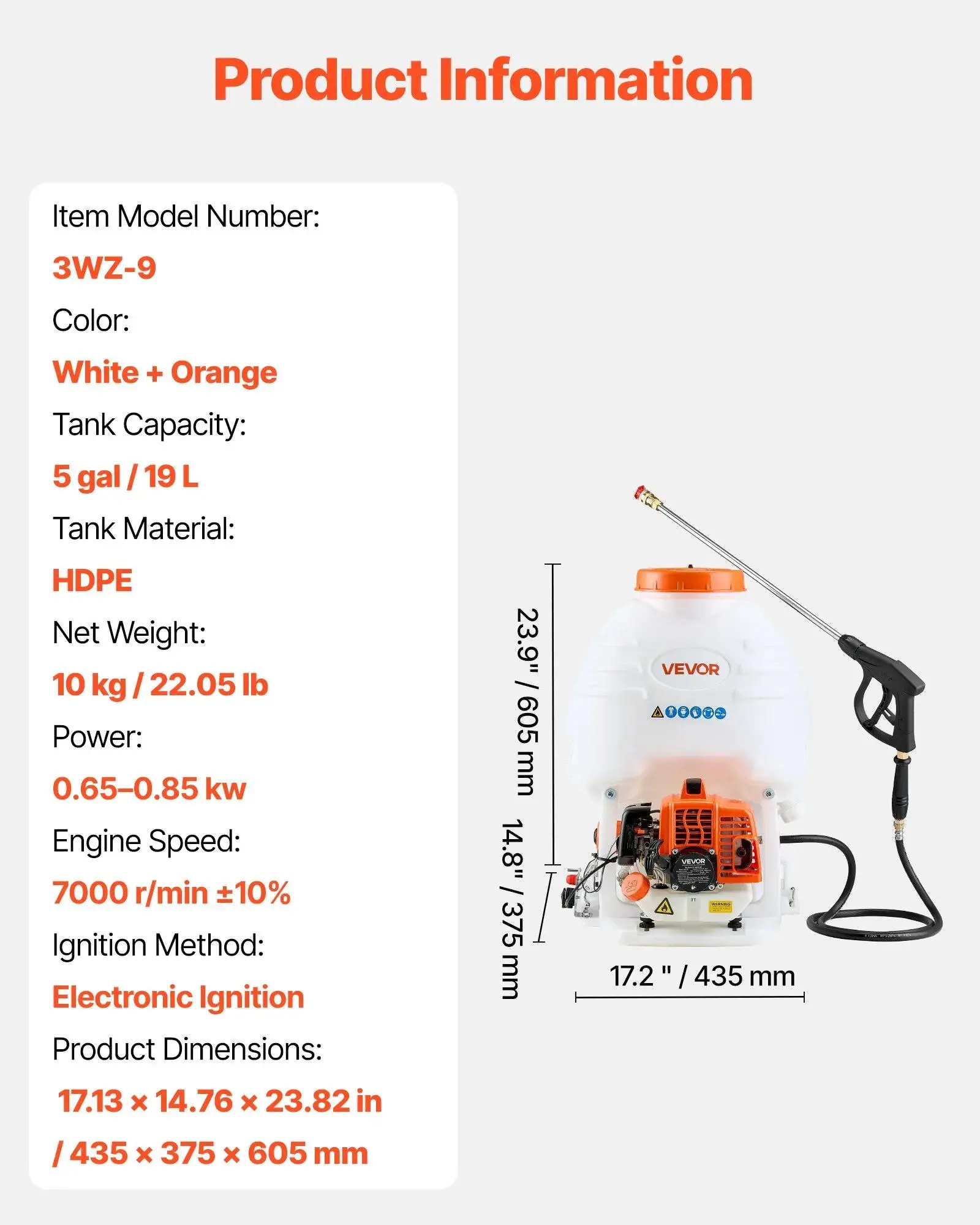 ·Reliable Engine Power: Powered by a 26.5cc 0.9HP engine, our gas powered sprayer delivers consistent pressure for wide coverage and stable spraying performance.