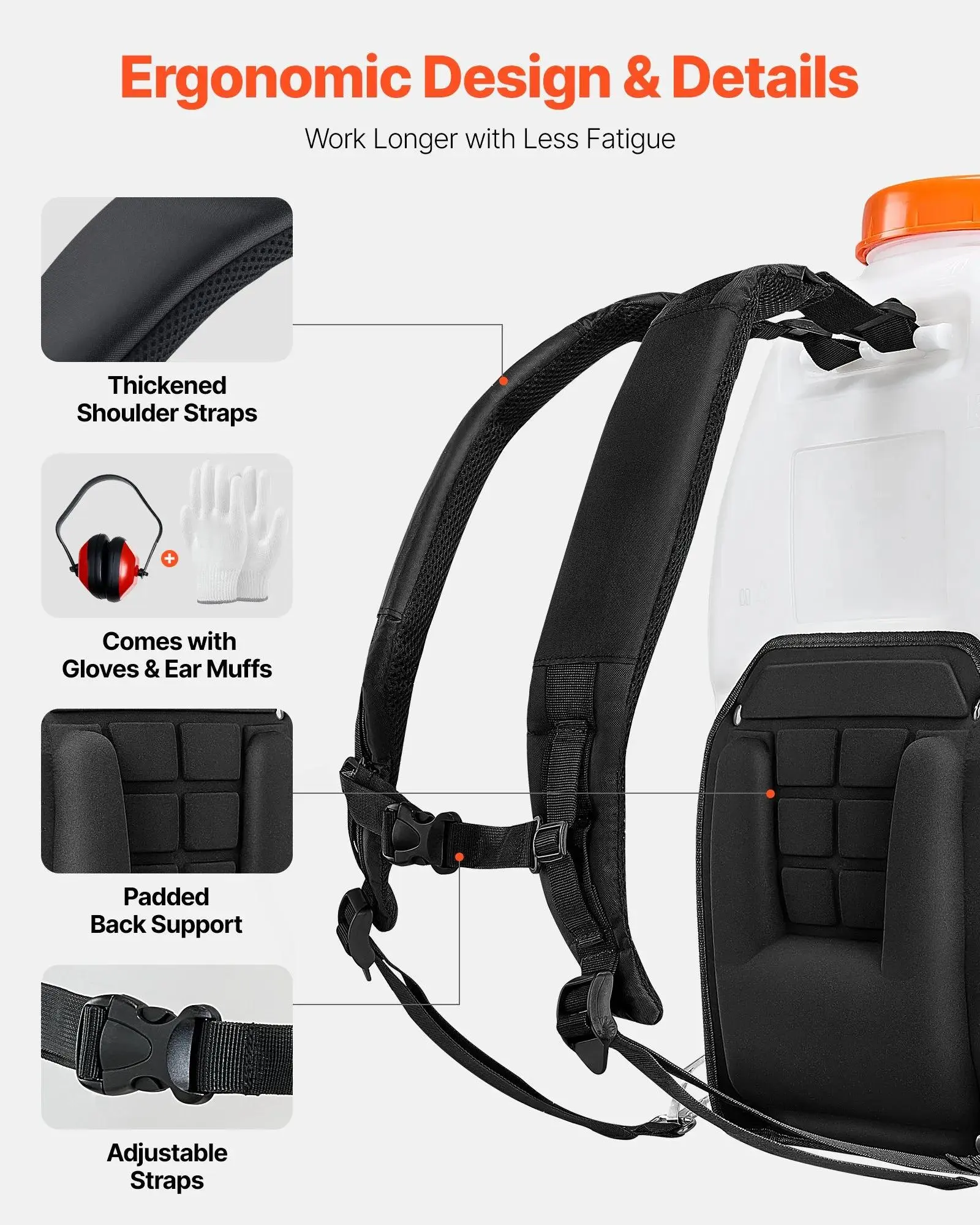 ·Large Capacity for Longer Spray: Equipped with a 5-gallon (19L) tank, this backpack sprayer reduces refill frequency and boosts efficiency.