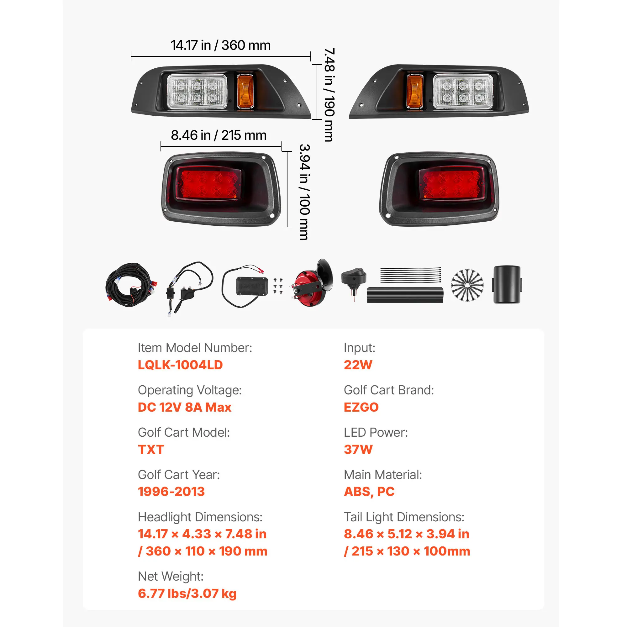 • Ideal Fit for Your Golf Cart: Designed for EZGO TXT 1996-2013, this golf cart light kit installs without modifications or adjustments. Whether you’re replacing old lights or Upgrading lighting system, it can give your golf cart a fresh look